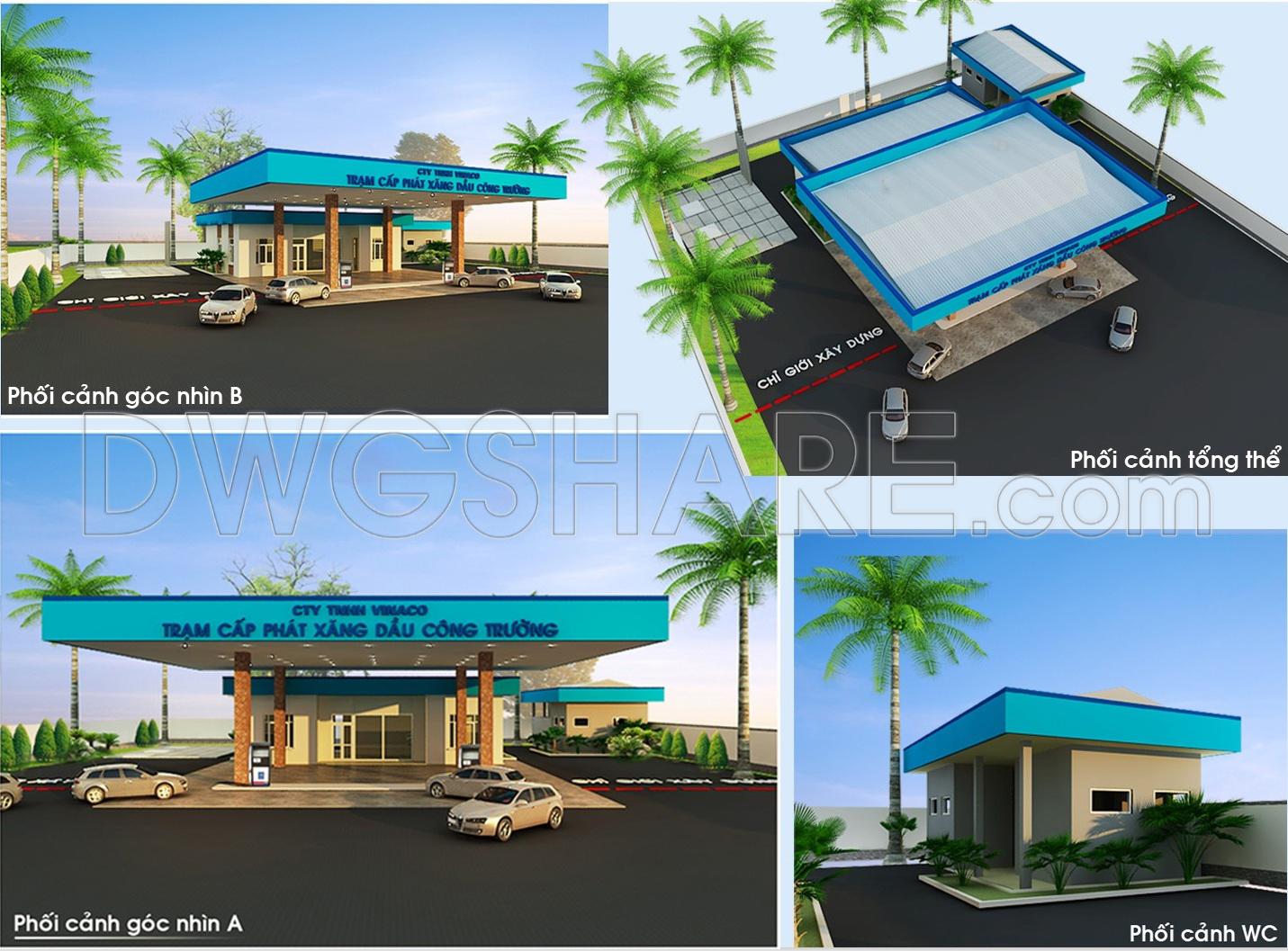 03. Free download of gas station design drawings with a total area of 1,200 m2