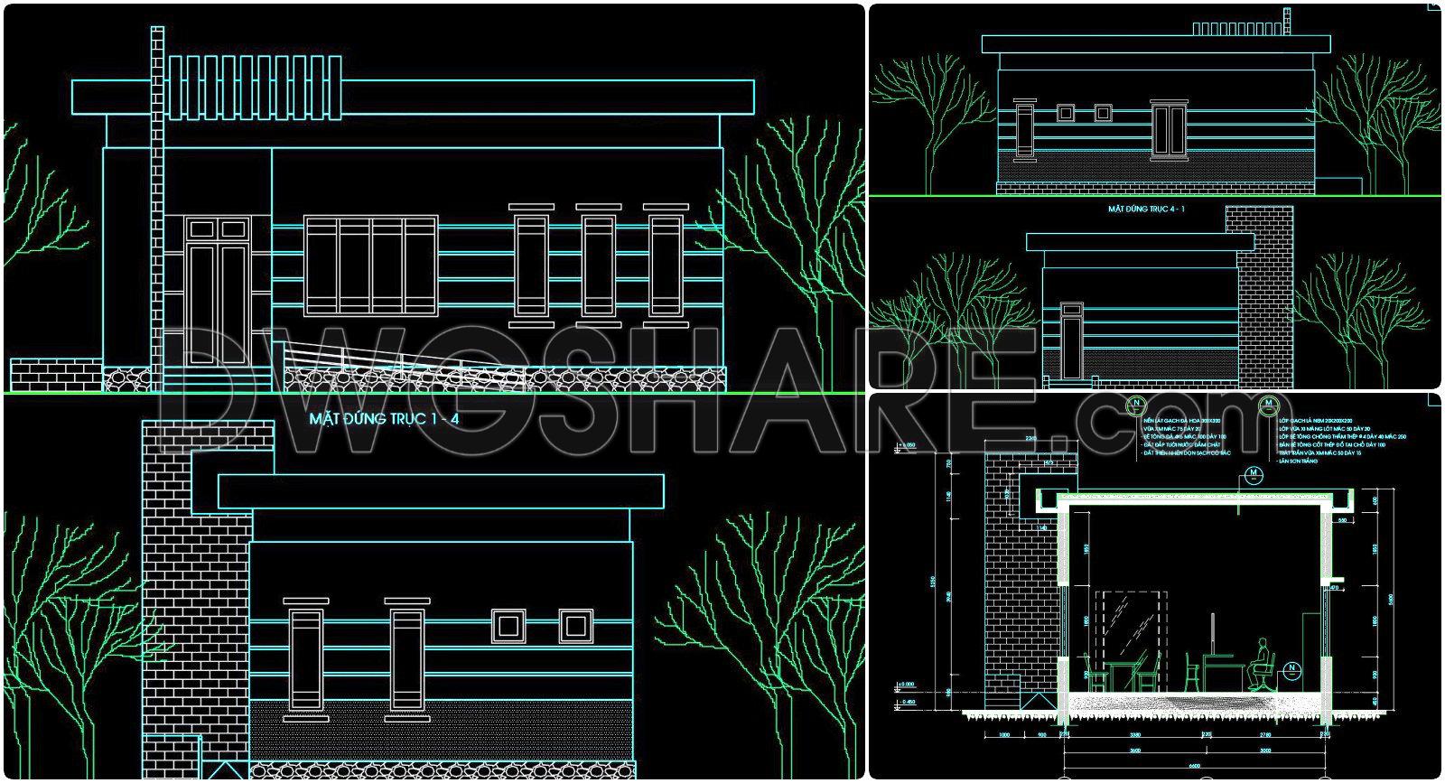 Looking at this drawing set, it’s clear that the project is a small-scale public building—specifically a commune-level post office—designed with practicality in mind. It doesn’t try to impress with complex forms, but instead focuses on being functional, efficient, and easy to build. With a footprint of about 8.7m x 12.7m, the layout prioritizes clarity and usability over unnecessary design gestures.