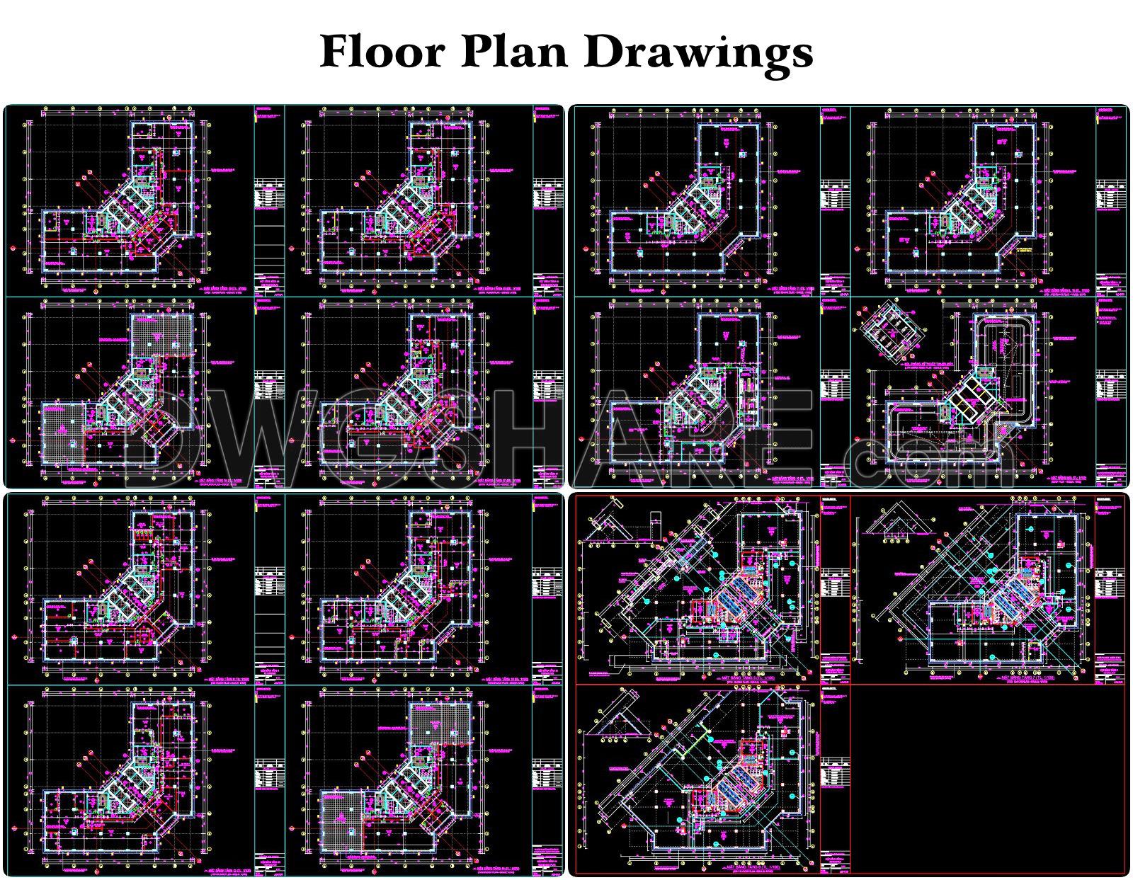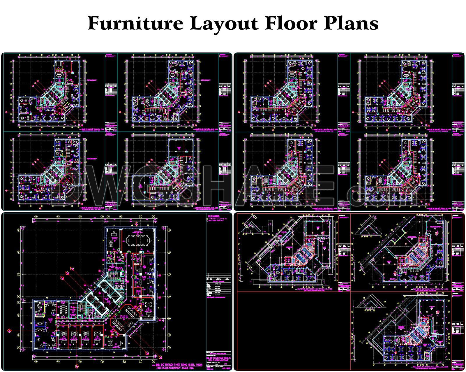 103. Free download CAD drawing of an office floor layout with a total area of 3,500m2