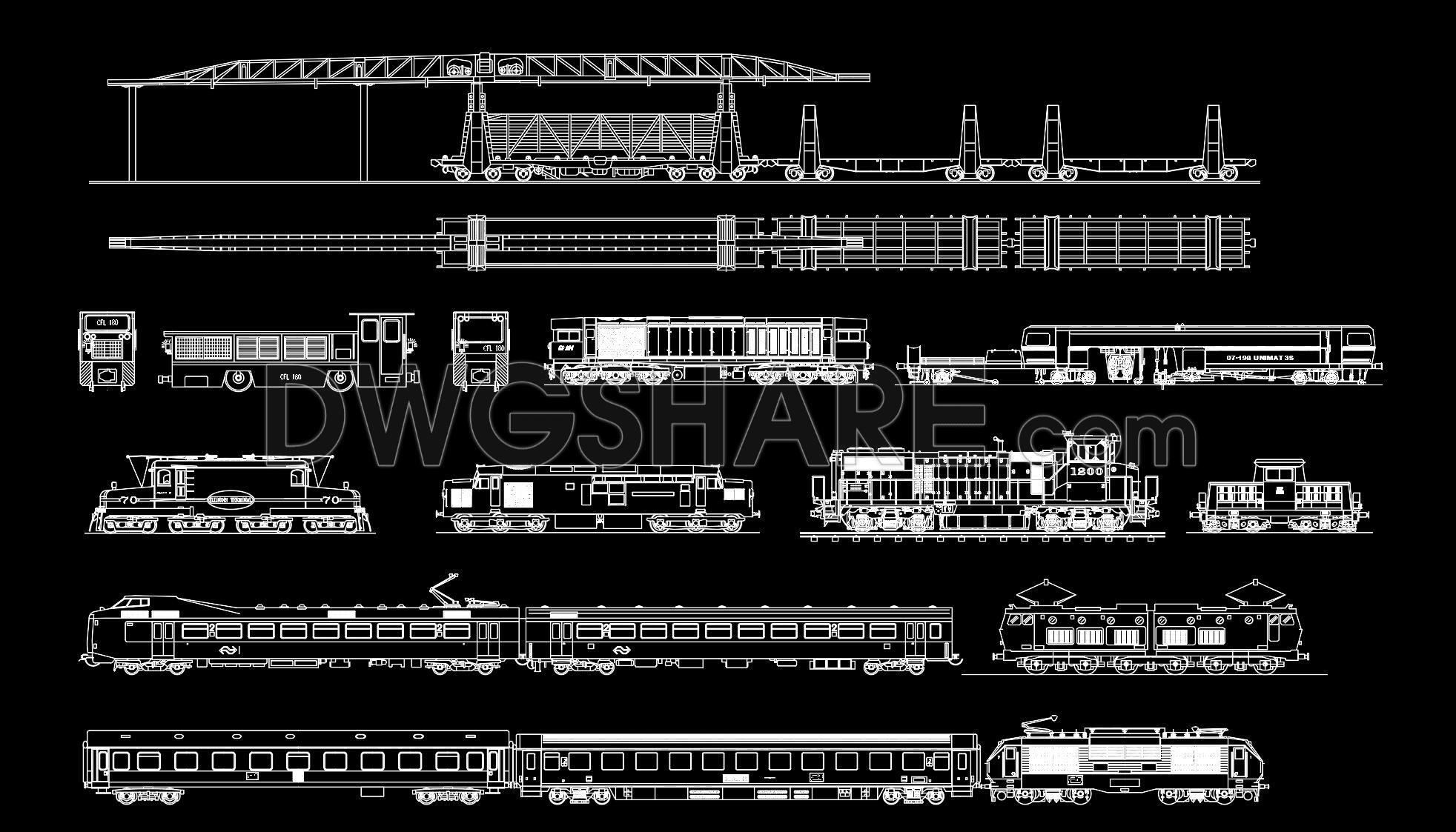 103. Free Download Railway Locomotives and Train Cars AutoCAD Drawings