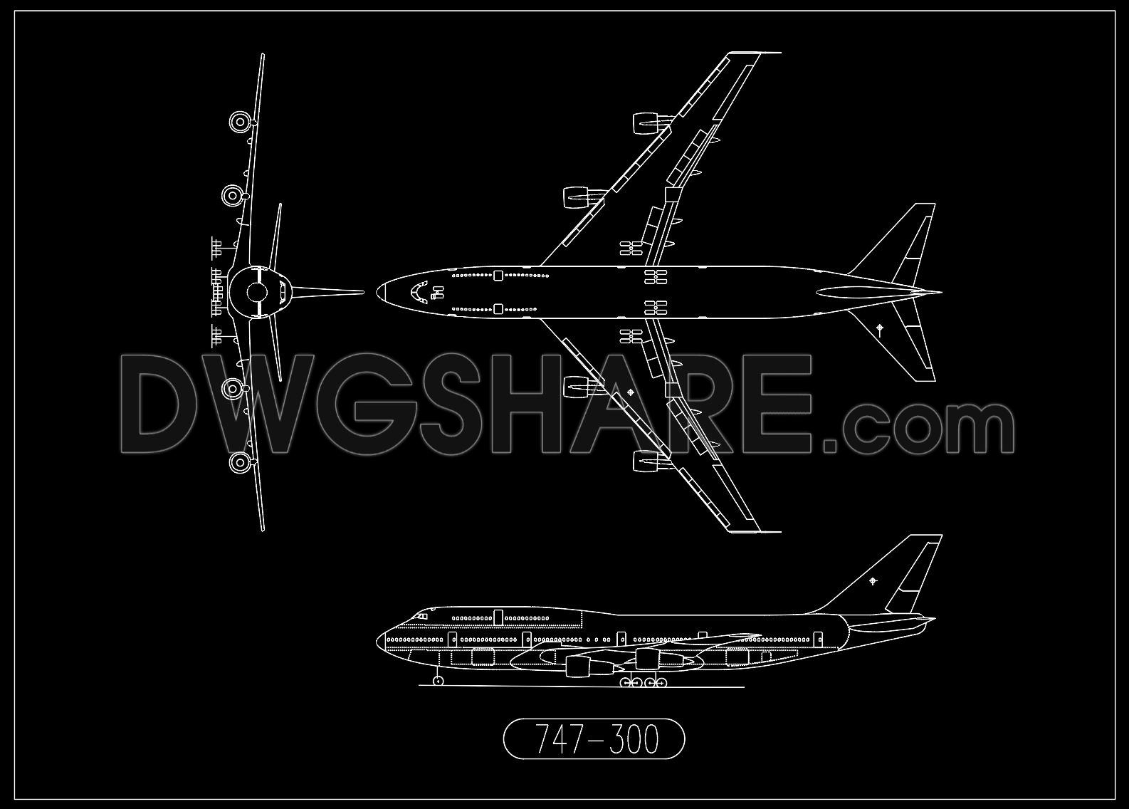 110. Free Download Boeing 747-300 Aircraft AutoCAD Drawings DWG