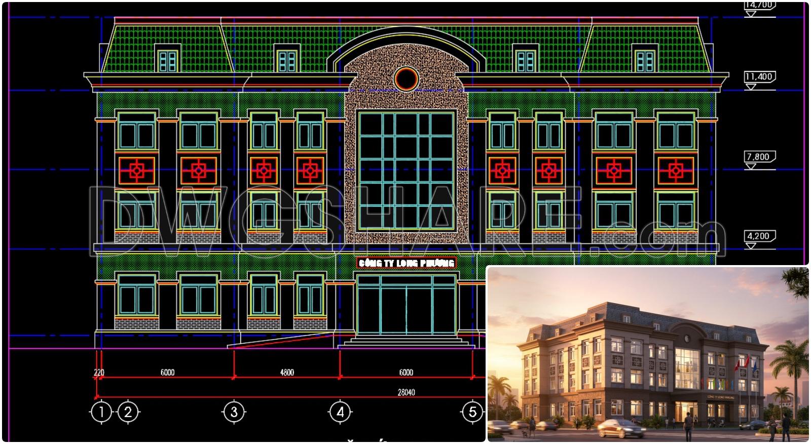 111. Free Download – Cad Elevation Drawing Of A 3-storey Office Building (2)