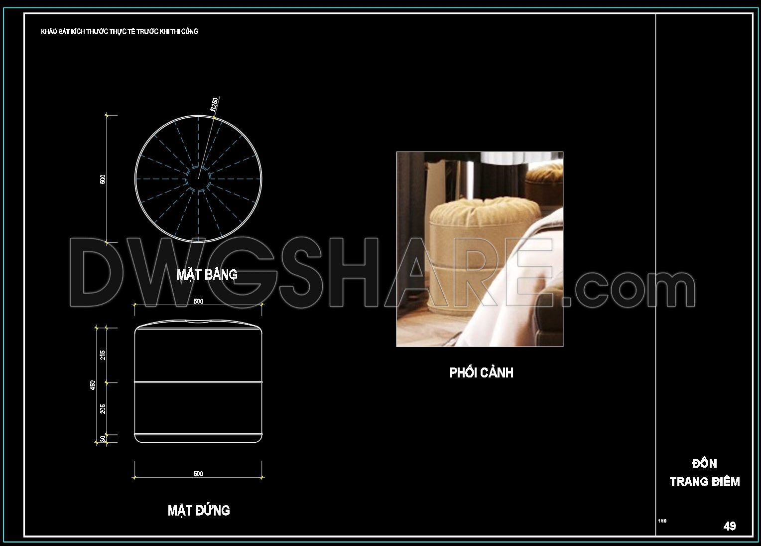 115. Free Download Bedroom Stool Detail CAD Drawing