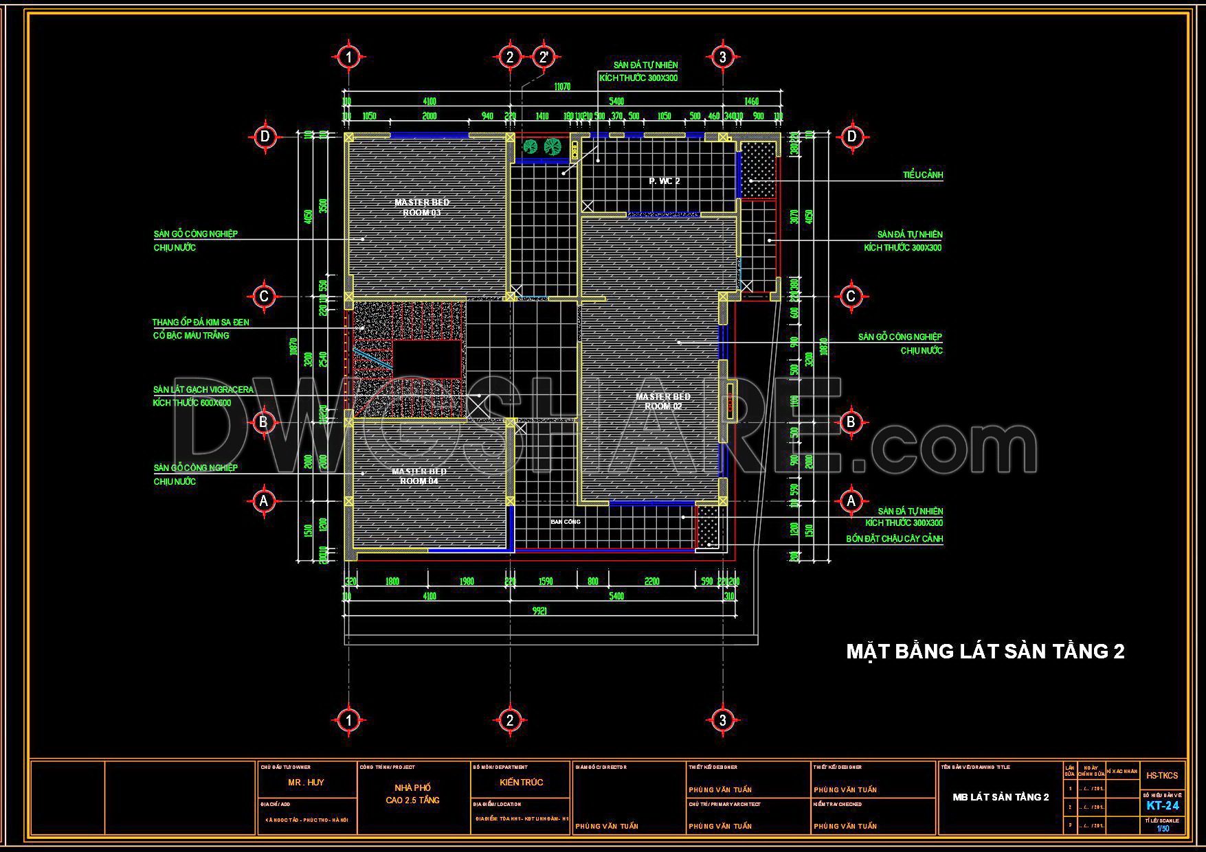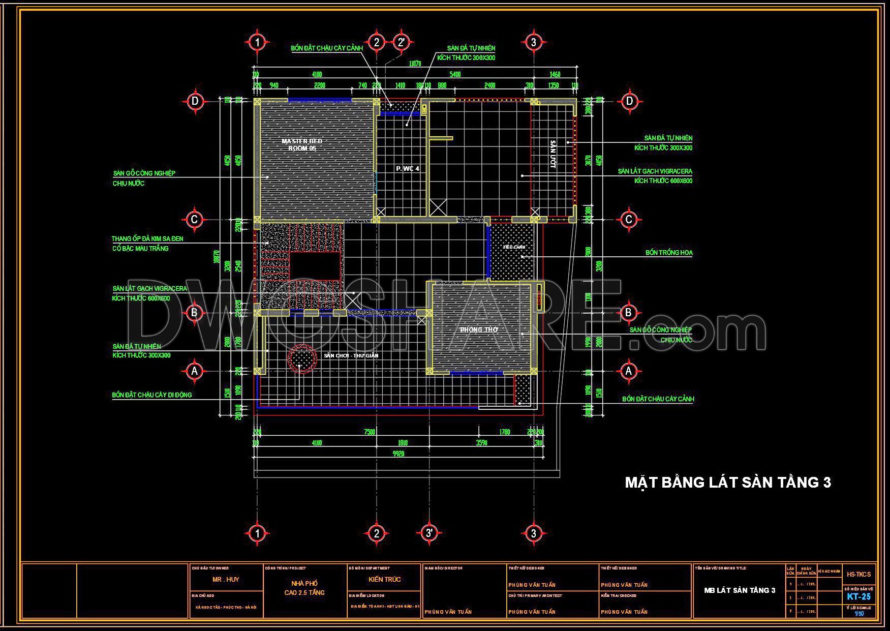 120. Free Download CAD Tile Layout Design – Three-Story House Plans