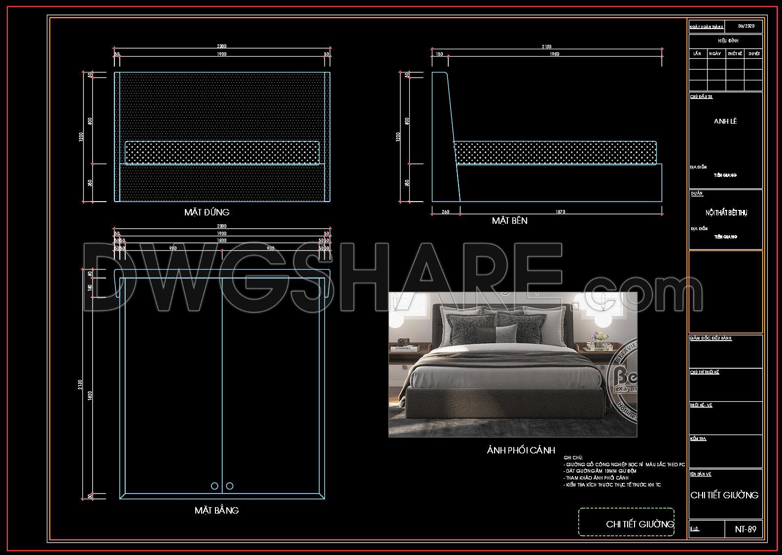 These bed CAD shop drawings provide a comprehensive look at the detailed designs necessary for modern architectural and interior design projects. The drawings offer multiple views including the front, side, and top perspectives, allowing for a complete understanding of the bed structure. Each view is meticulously detailed with dimensions, such as width and height, essential for precise planning and implementation. The CAD DWG files are perfect for architects and interior designers seeking accuracy and the ease of modern digital planning.