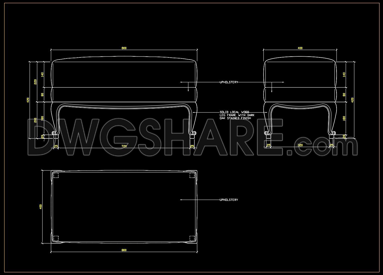 In this DWG file, the key components of the armchair have been expertly illustrated, including: