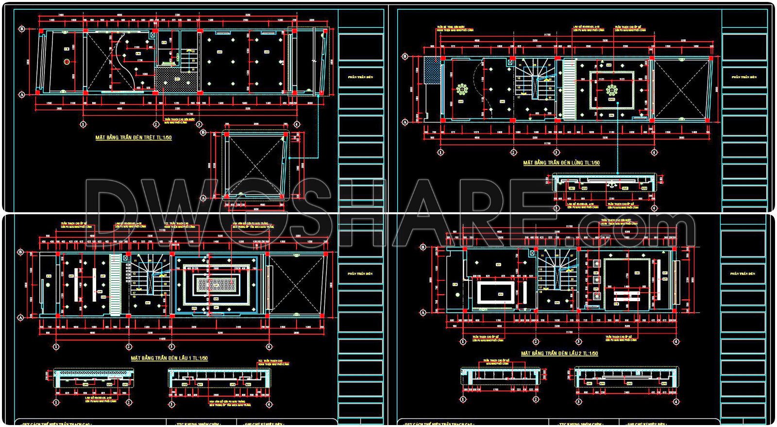 132. Detailed CAD drawings for the ceiling layout design of a 3-story townhouse