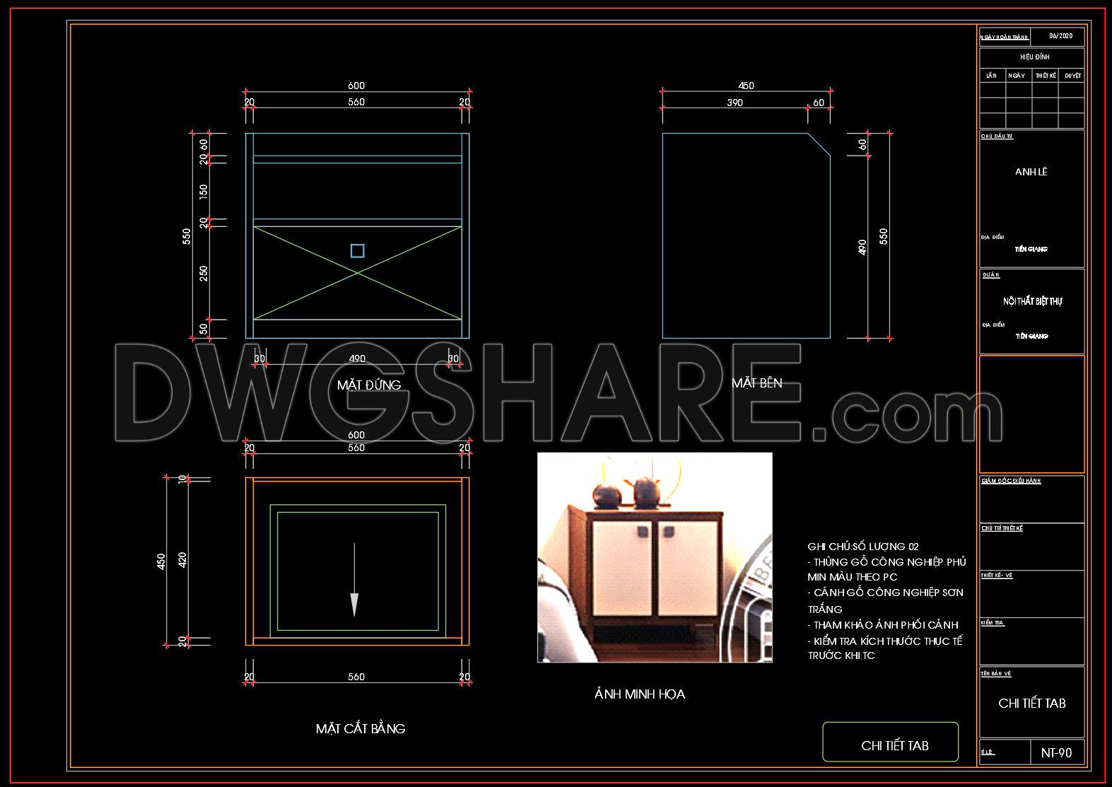 134. Free Download – CAD Shop Drawing of Bedside Table