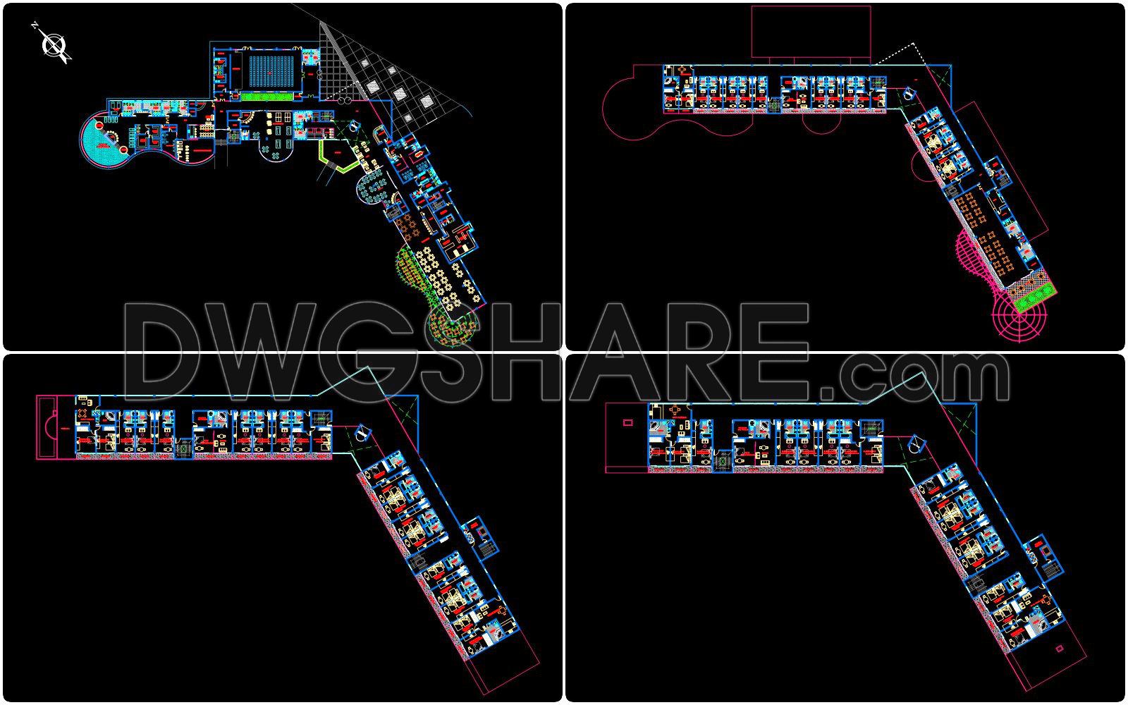 135. Architectural design drawings of a 4-star hotel in AutoCAD DWG