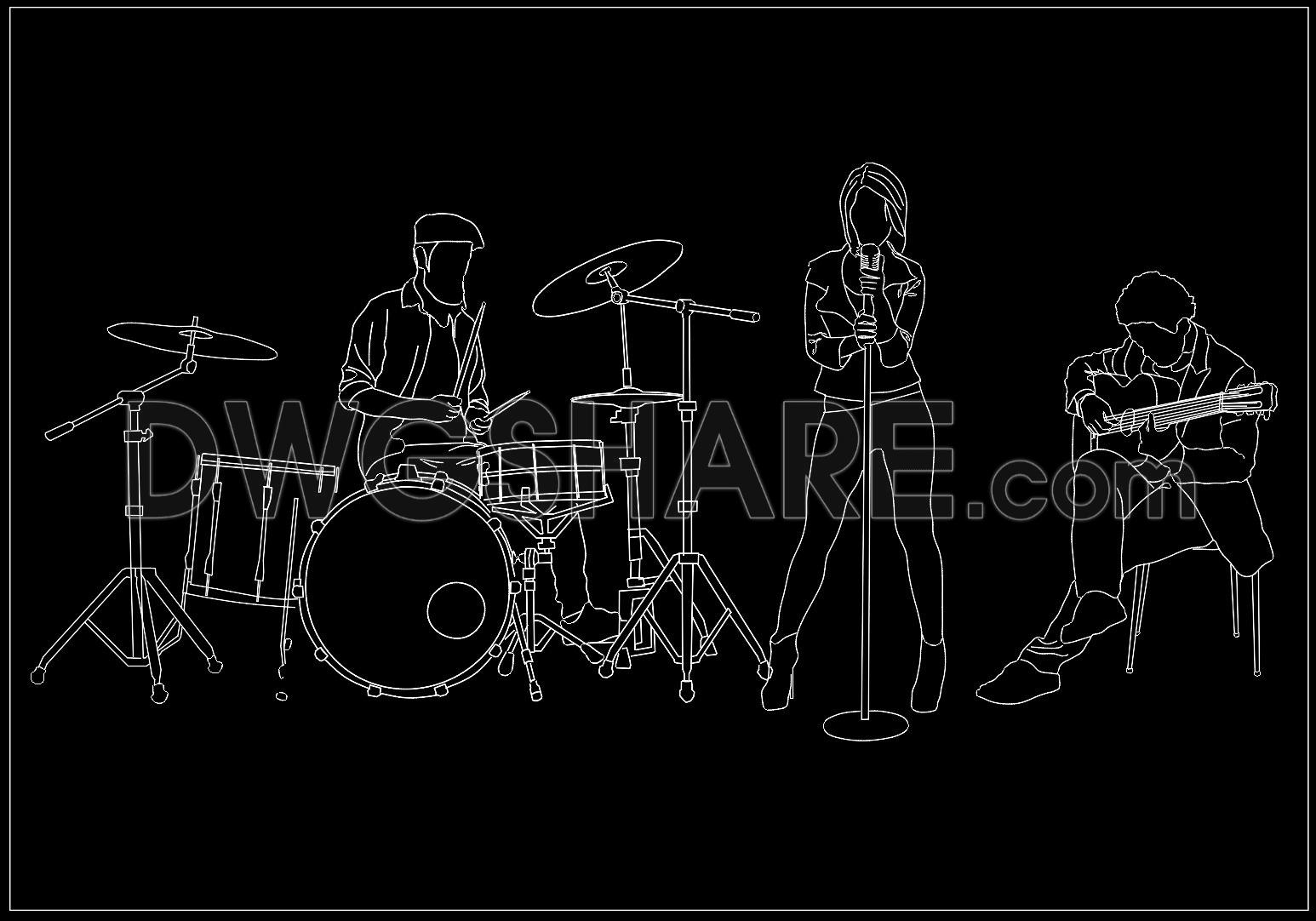 136. Free CAD Blocks Musicians – Band, Singer, Drummer & Guitar Player DWG