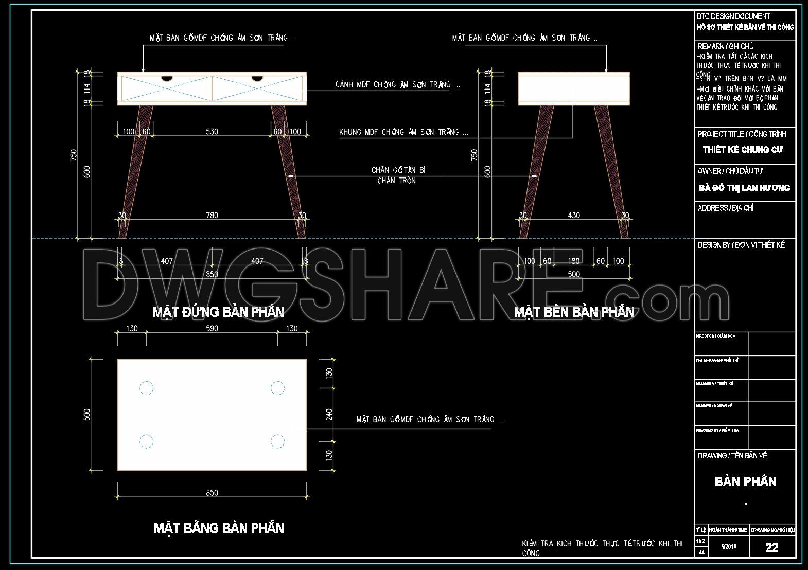 Unlock the full potential of your bedroom design with the comprehensive Dressing Table CAD Shop Drawing for Bedroom. This free download offers precise and detailed views of a sleek dressing table, including front, side, and top perspectives. The CAD DWG files are invaluable assets for architects, interior designers, and builders, allowing for seamless integration into any project. With dimensions meticulously displayed, this drawing ensures accuracy and efficiency in application.