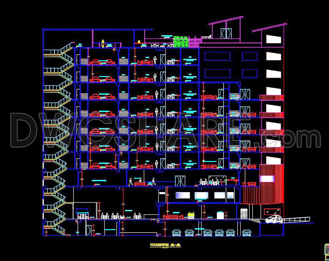 144. Free Download Architectural Drawings of a 4-Star Hotel with Basement – AutoCAD DWG