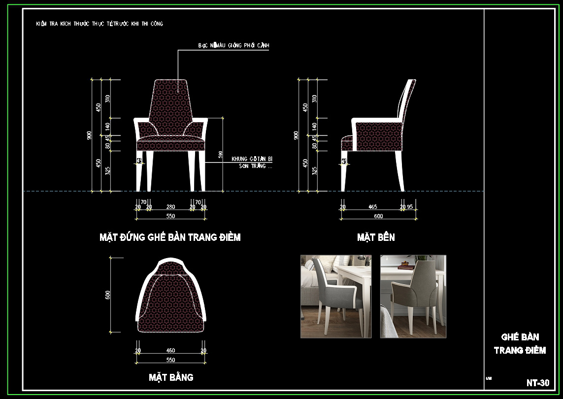 The CAD design of a dining chair with full dimensions offers a complete blueprint for architects and designers aiming for precision in their projects. These drawings provide multiple views, each serving a critical purpose in visualizing and constructing the elegant dining chair. The design features comprehensive dimensions: a total height of 900 mm, a seat height of 450 mm, and a width of 550 mm, ensuring that every detail is meticulously planned.