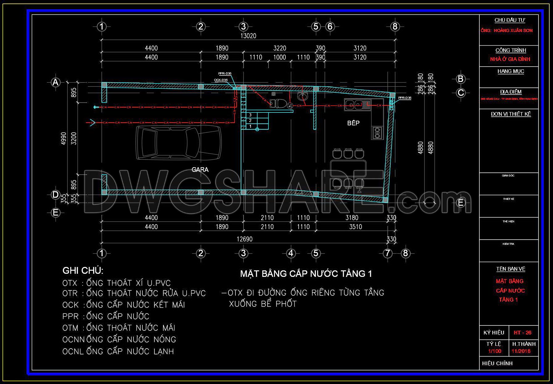 The first drawing showcases the plumbing layout for the house’s first floor, detailing the intricate network of pipes and fixtures. Key components visible include: