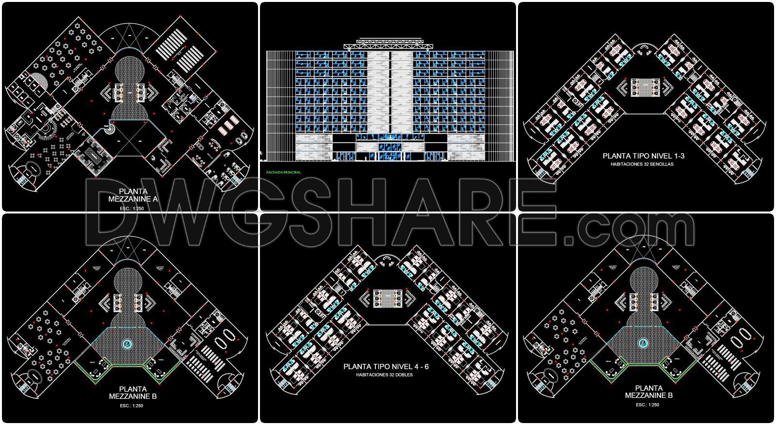 147. Free Download Architectural Drawings of a 5-Star Hotel – AutoCAD DWG