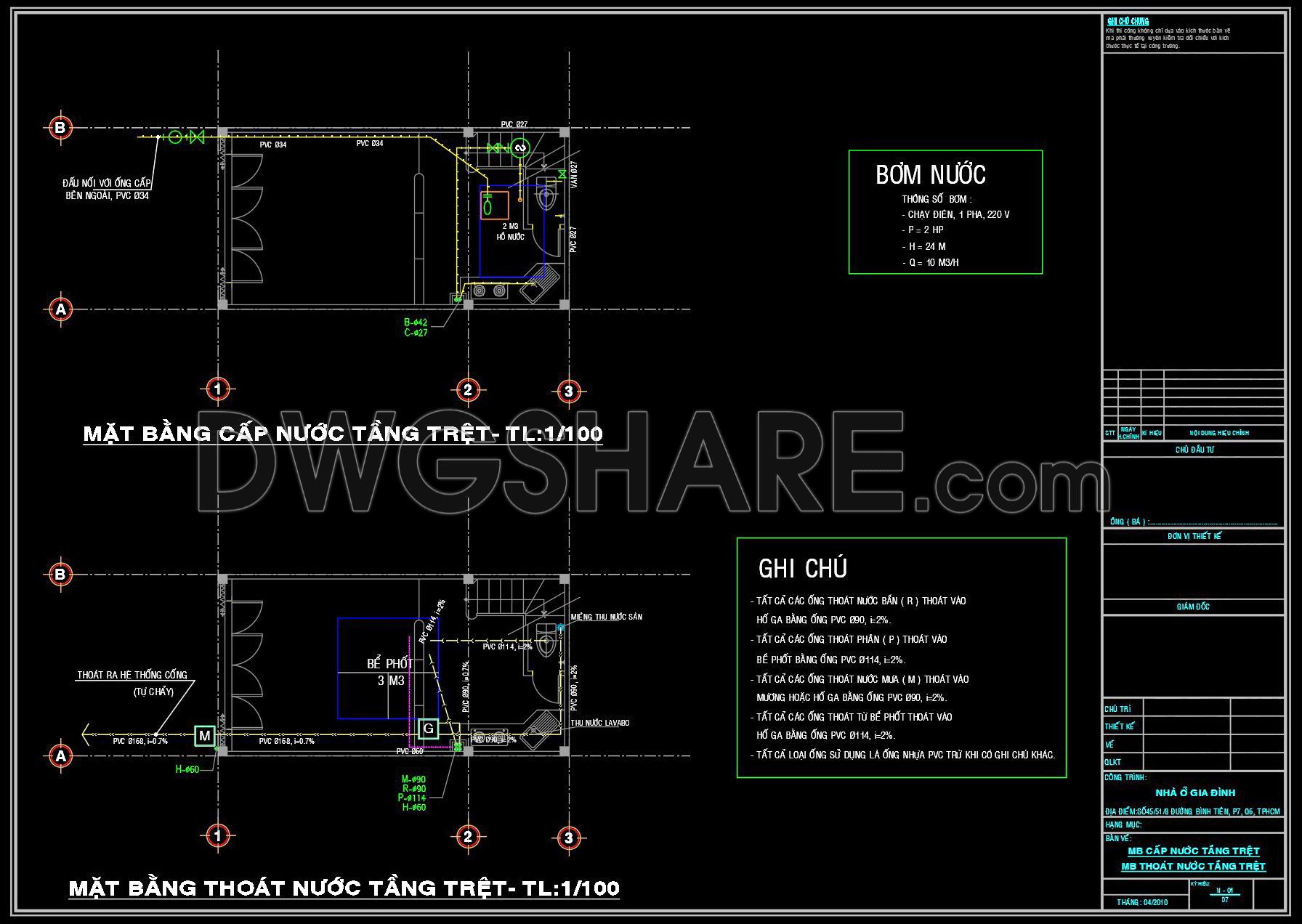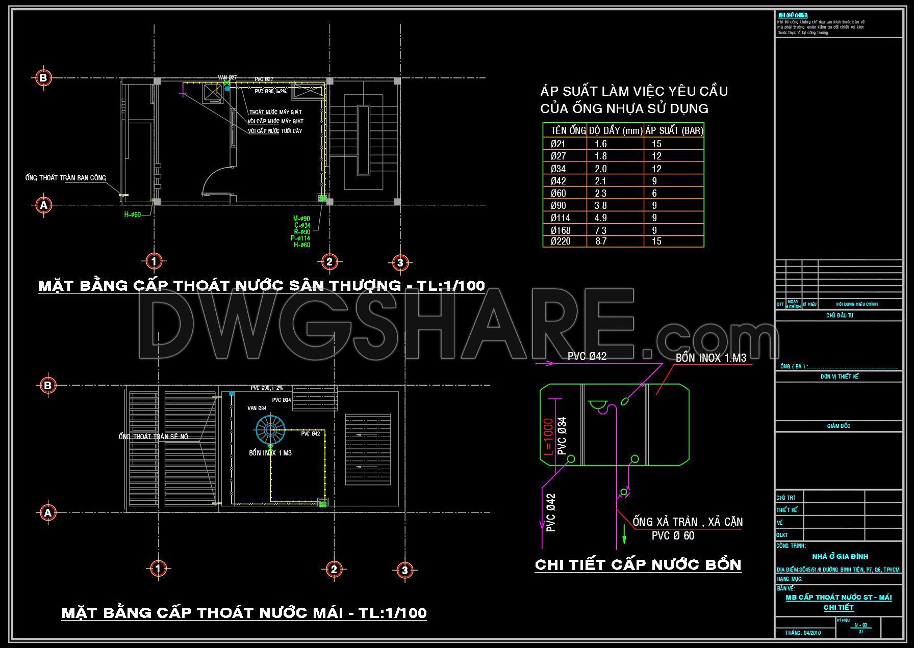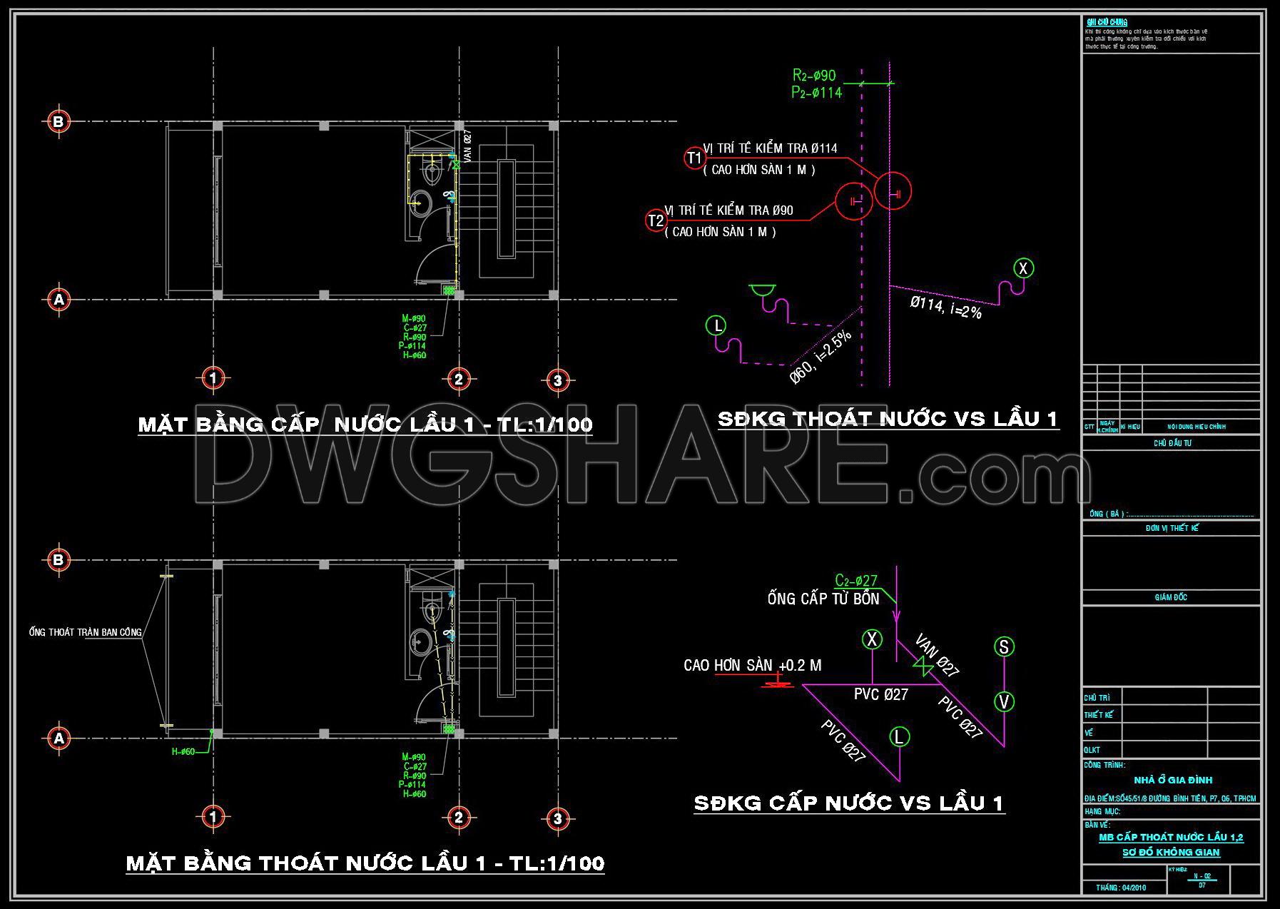 149. CAD drawings detailing the design of water supply and drainage systems for a 3-story townhouse