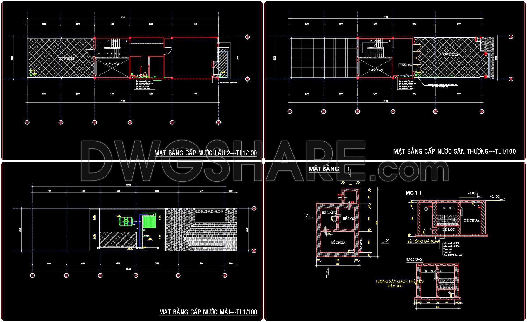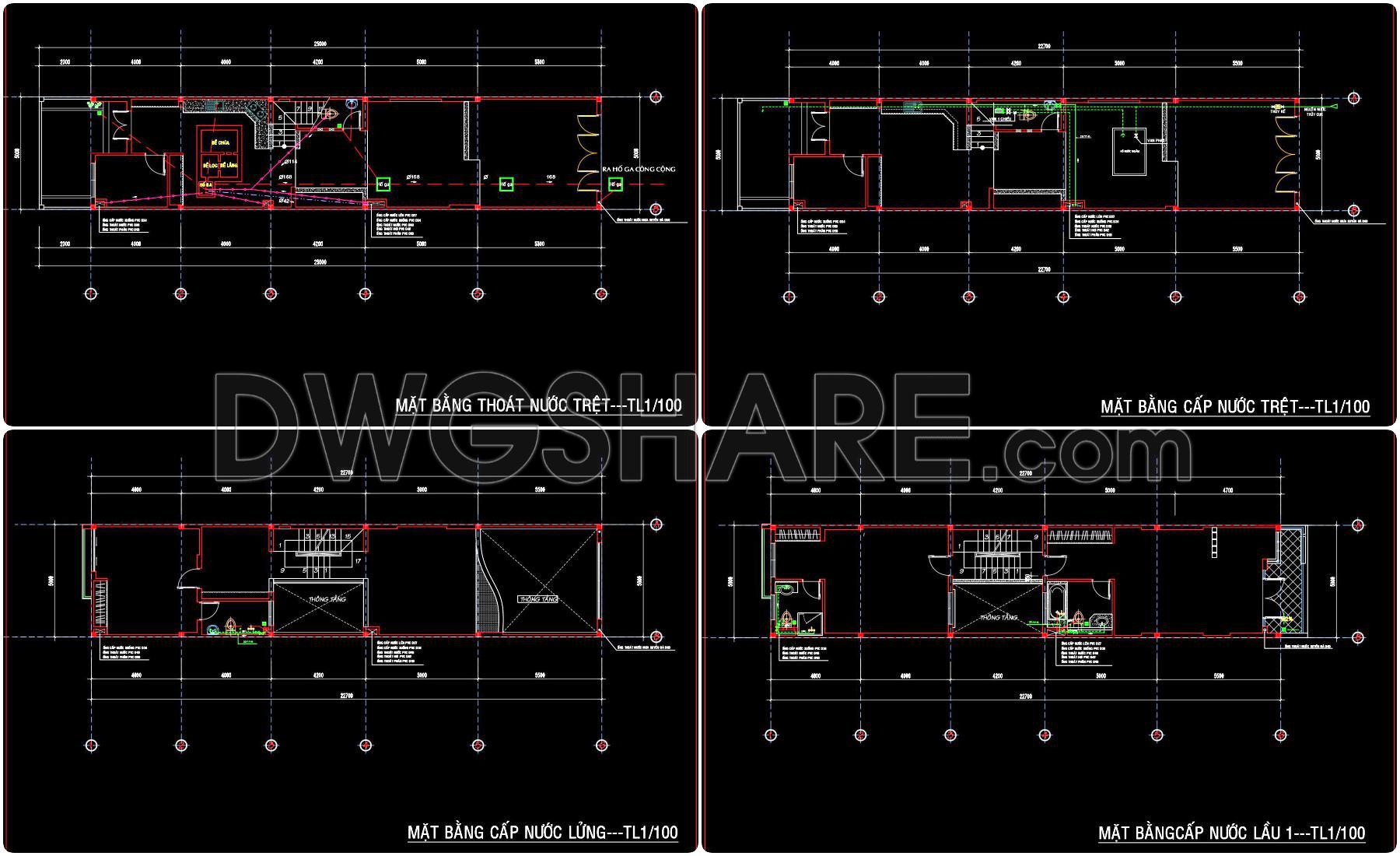 151. CAD drawings detailing the design of water supply and drainage systems for a 2-story townhouse