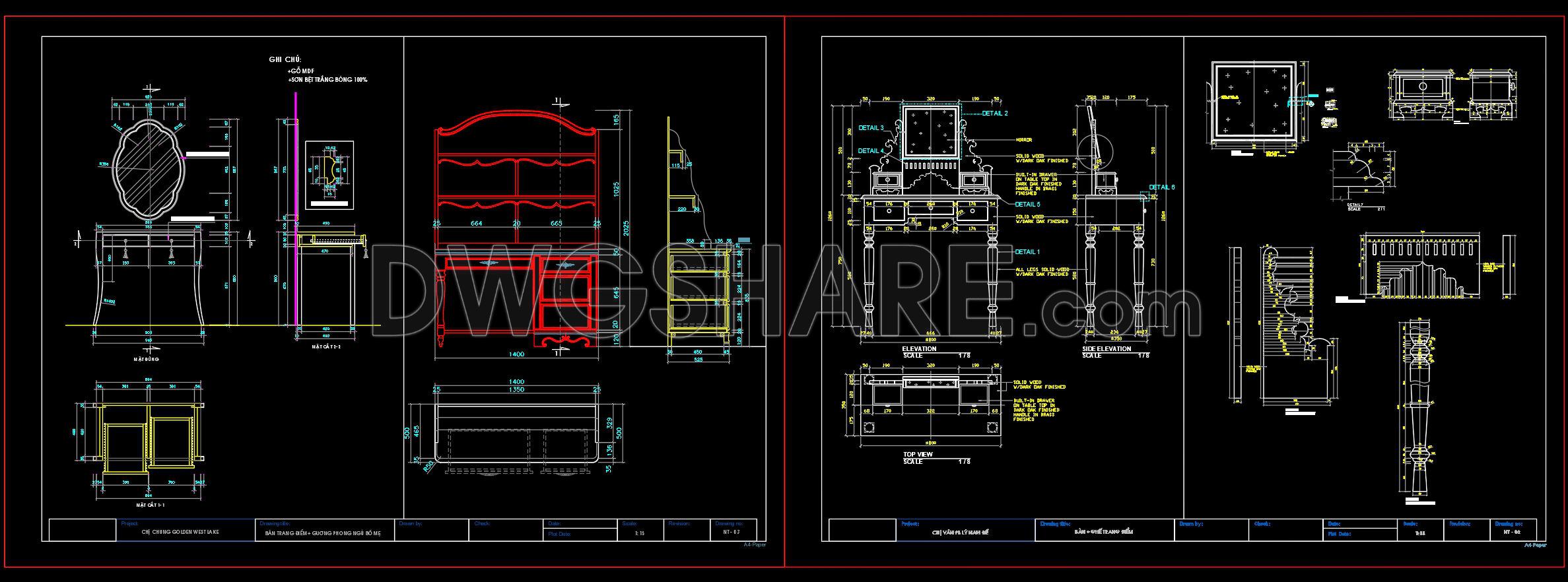 151. Download Dressing Table CAD Shop Drawing Collection