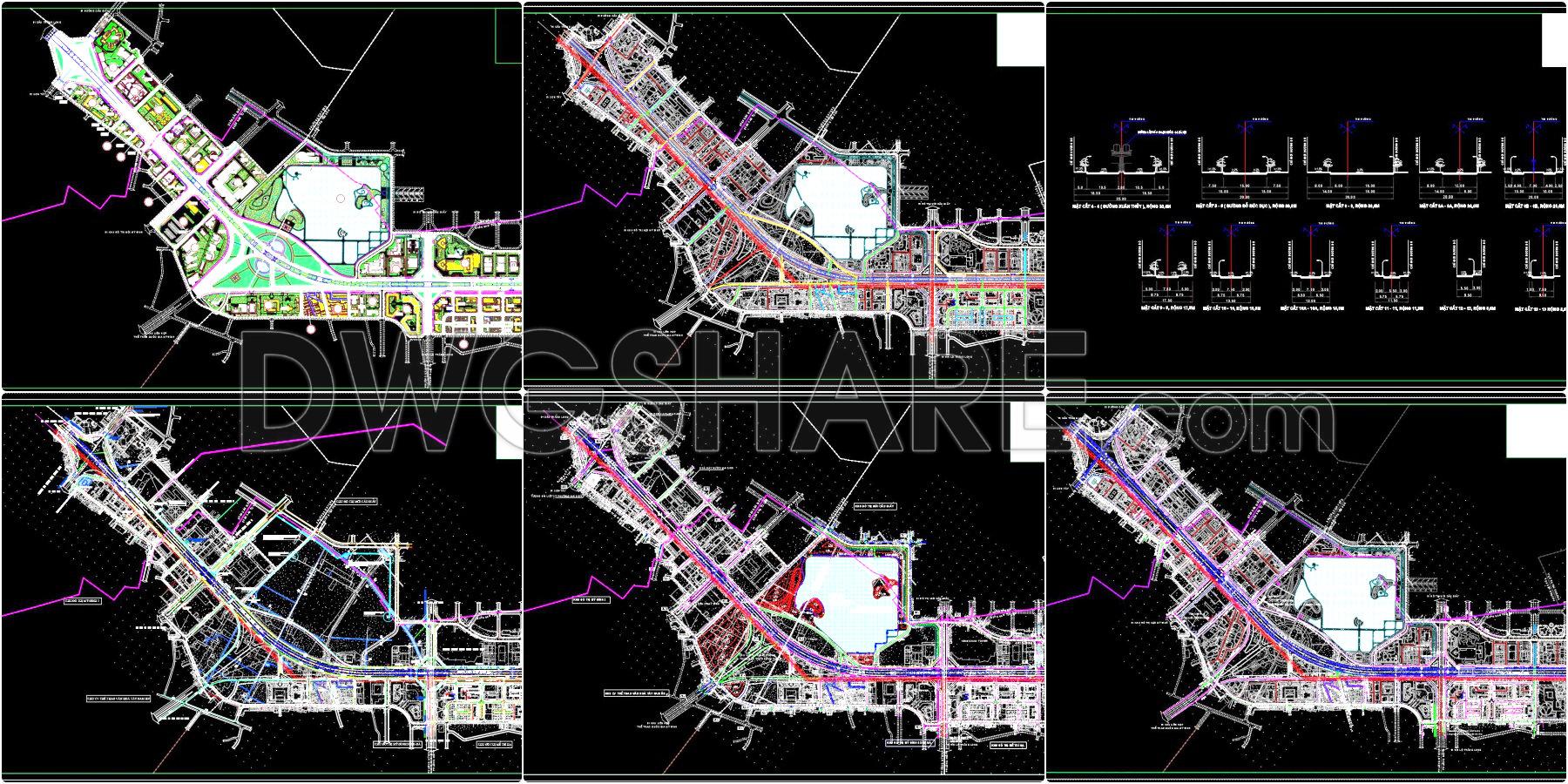 - Transportation system: Includes main roads, internal roads, roundabouts, underpasses, and overpasses.
