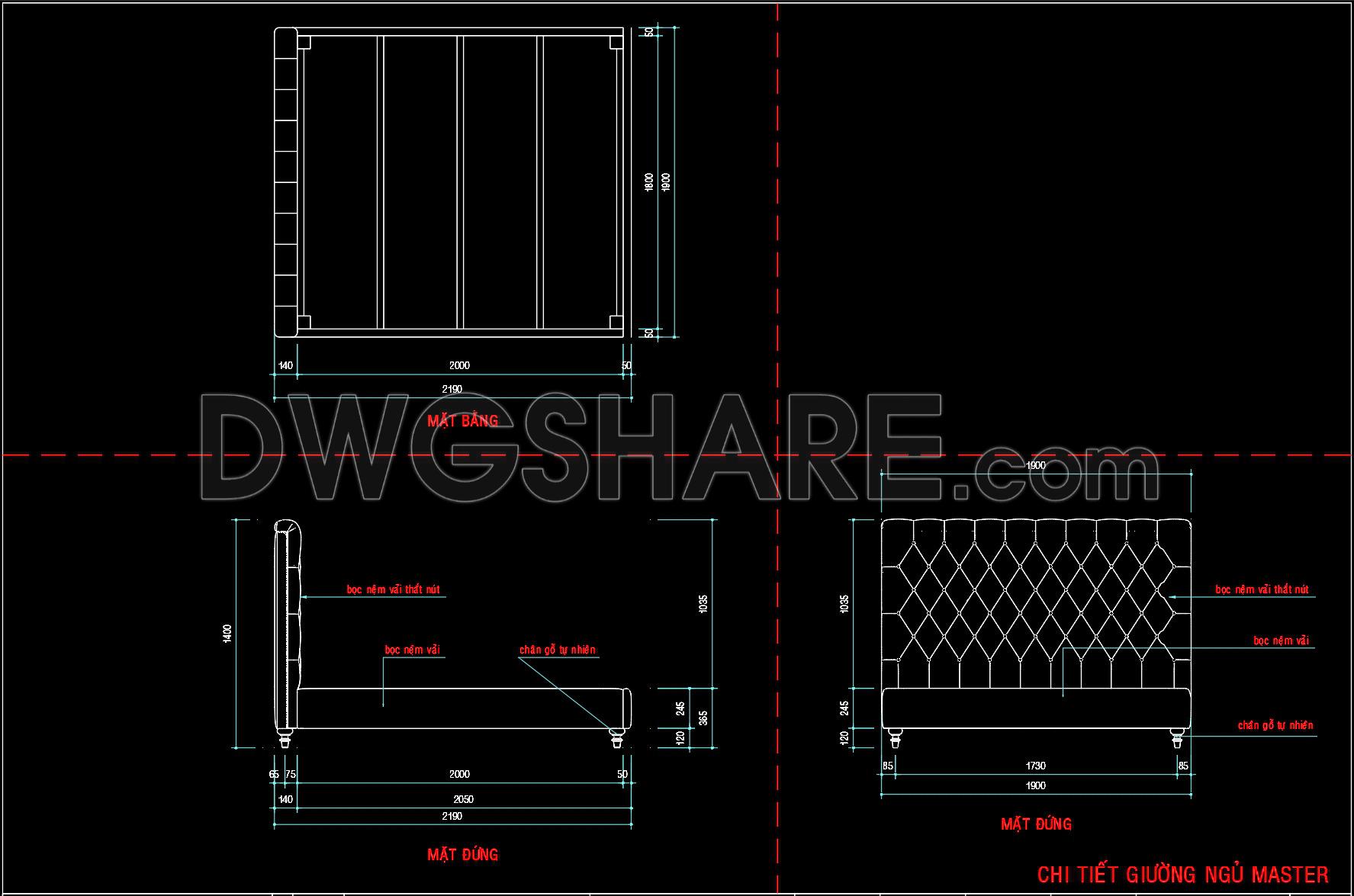 159. Free CAD Files for Master Bedroom Bed Design and Details