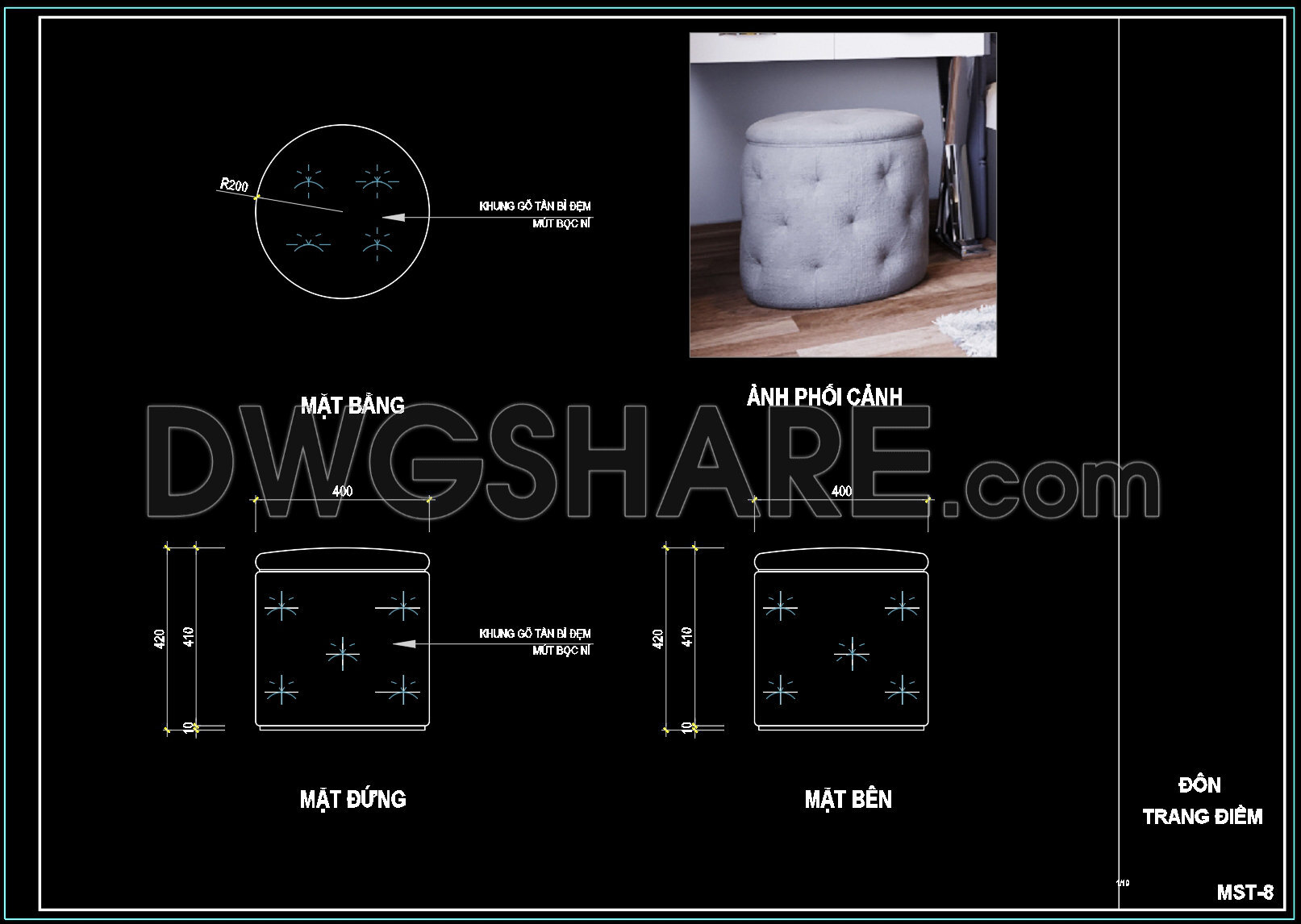 16. Free CAD Sofa and Dressing Stool Drawing Download
