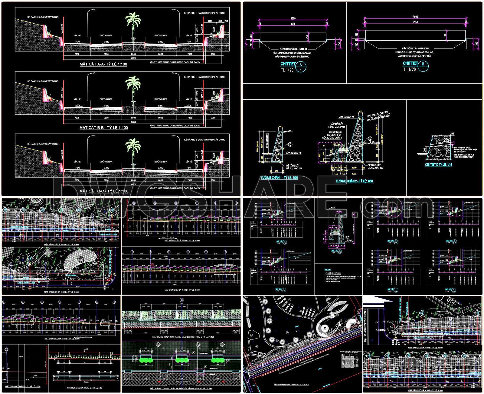 This comprehensive engineering set provides a complete design solution for coastal and riverside protection. The drawings focus on structural integrity and environmental integration, ensuring long-term stability against erosion and wave action.