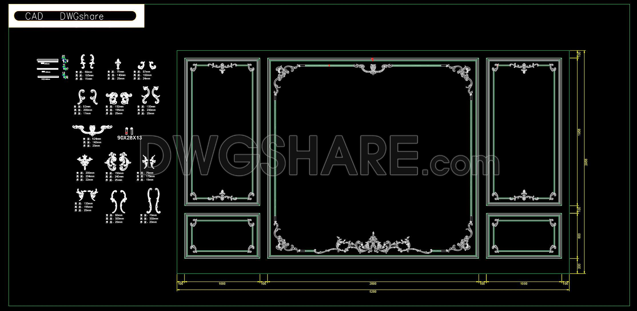 161. Free Download Luxury French-Style Background Wall Module DWG File