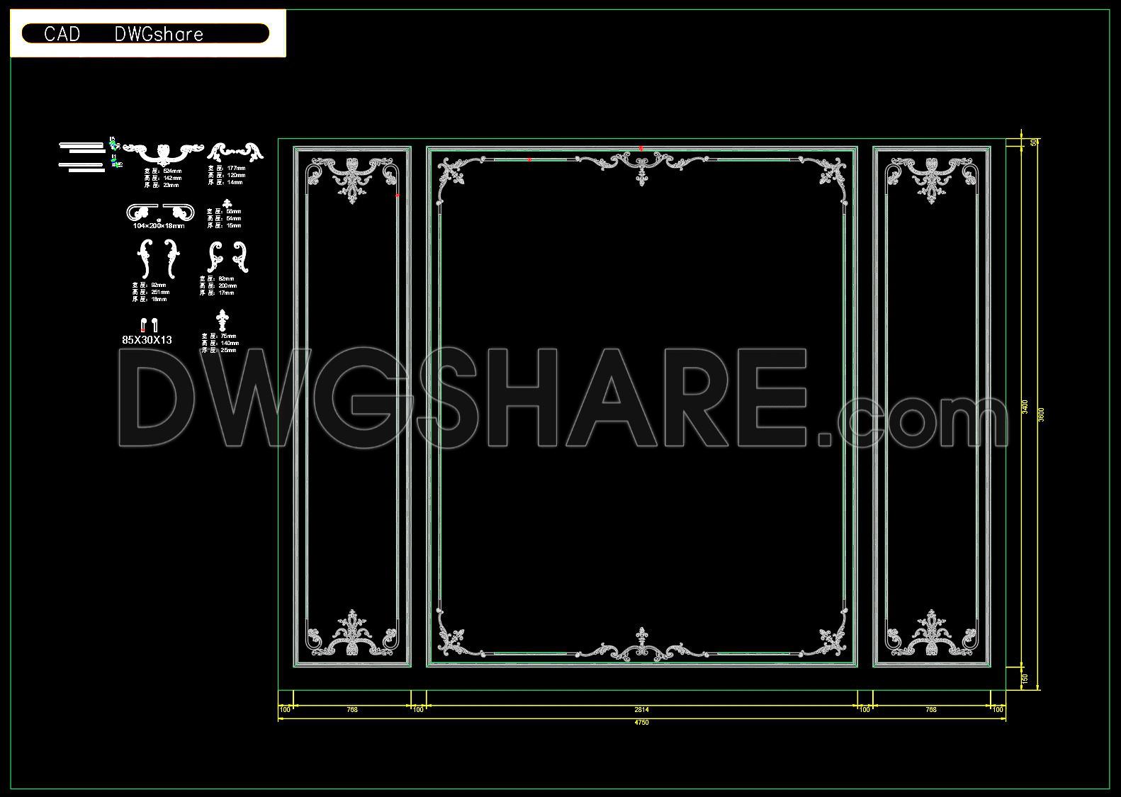 164. Free Download Luxury French-Style Background Wall Module DWG File