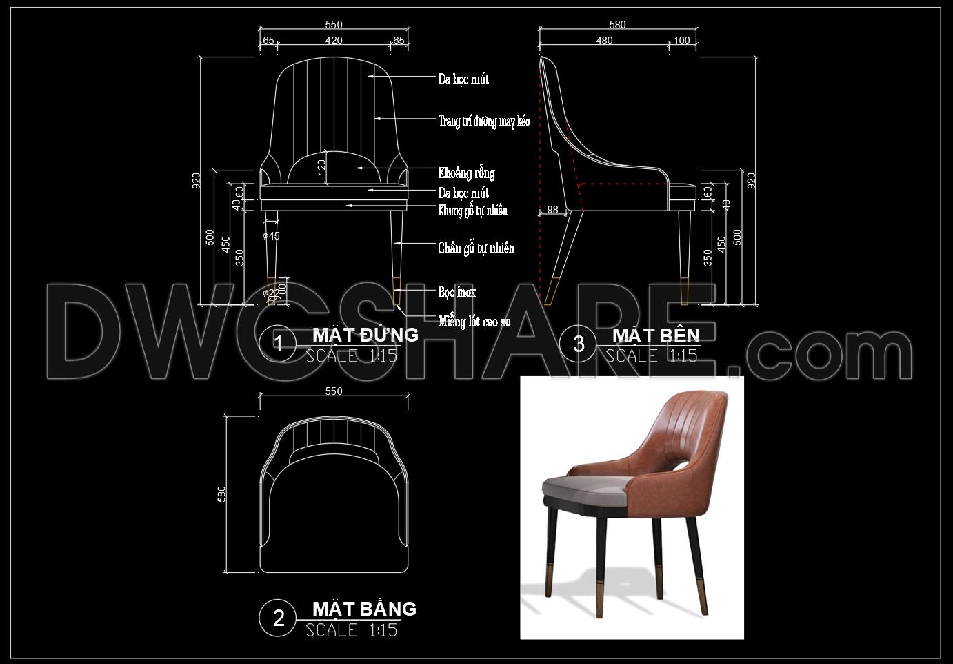 187. Free Download CAD Design of Dining Chair with Full Dimensions