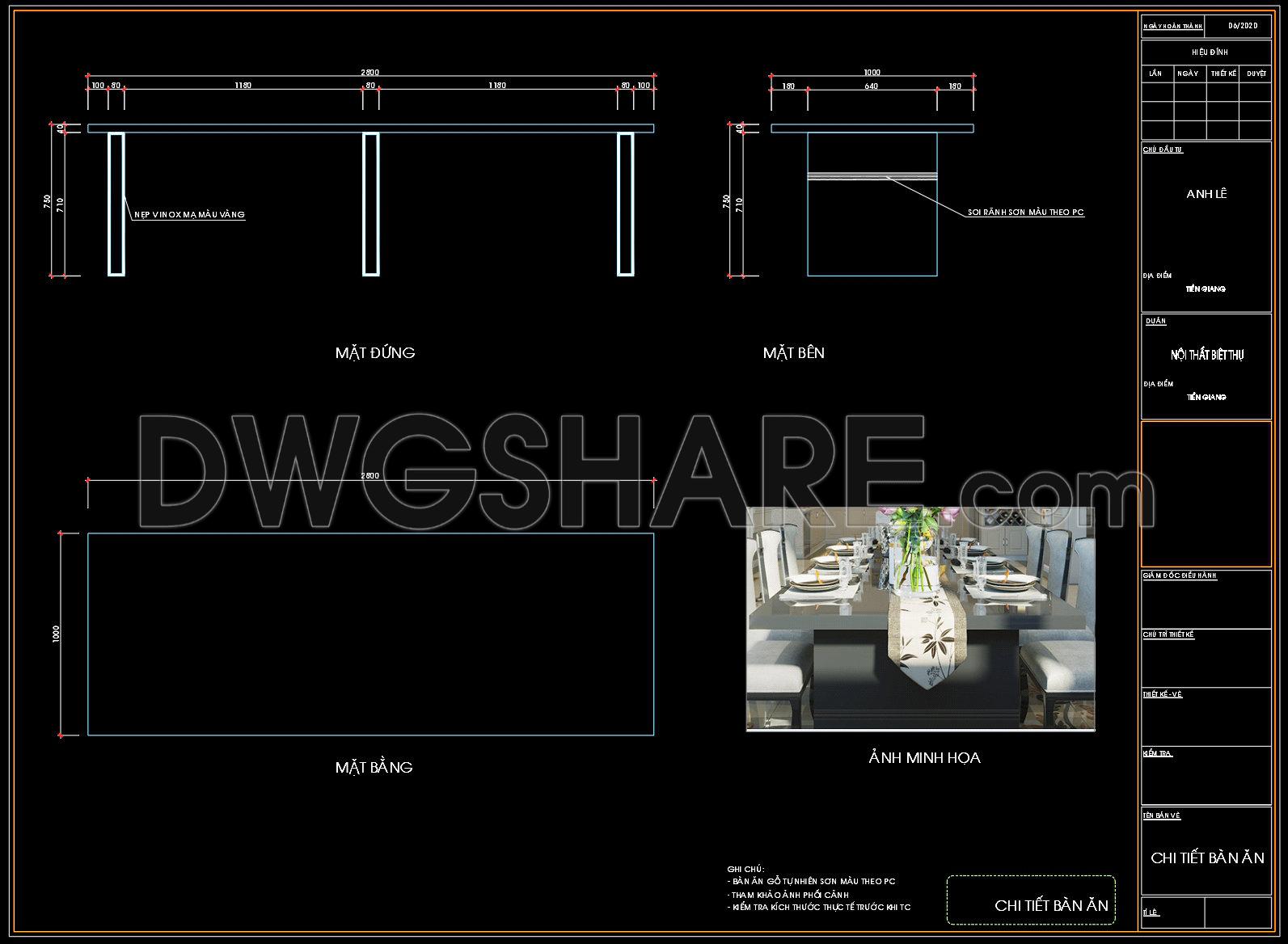 The modern dining table design displayed in these CAD drawings showcases a sleek and contemporary piece of furniture ideal for any dining space. This collection of drawings features multiple views including a top view, side view, and a front view, allowing for a comprehensive understanding of the table’s dimensions and design intricacies. The table measures 2.8 meters in length and 1.1 meters in width, offering ample space for dining. Each view highlights different components such as the tabletop, legs, and structural details, making these drawings invaluable for architects and interior designers.