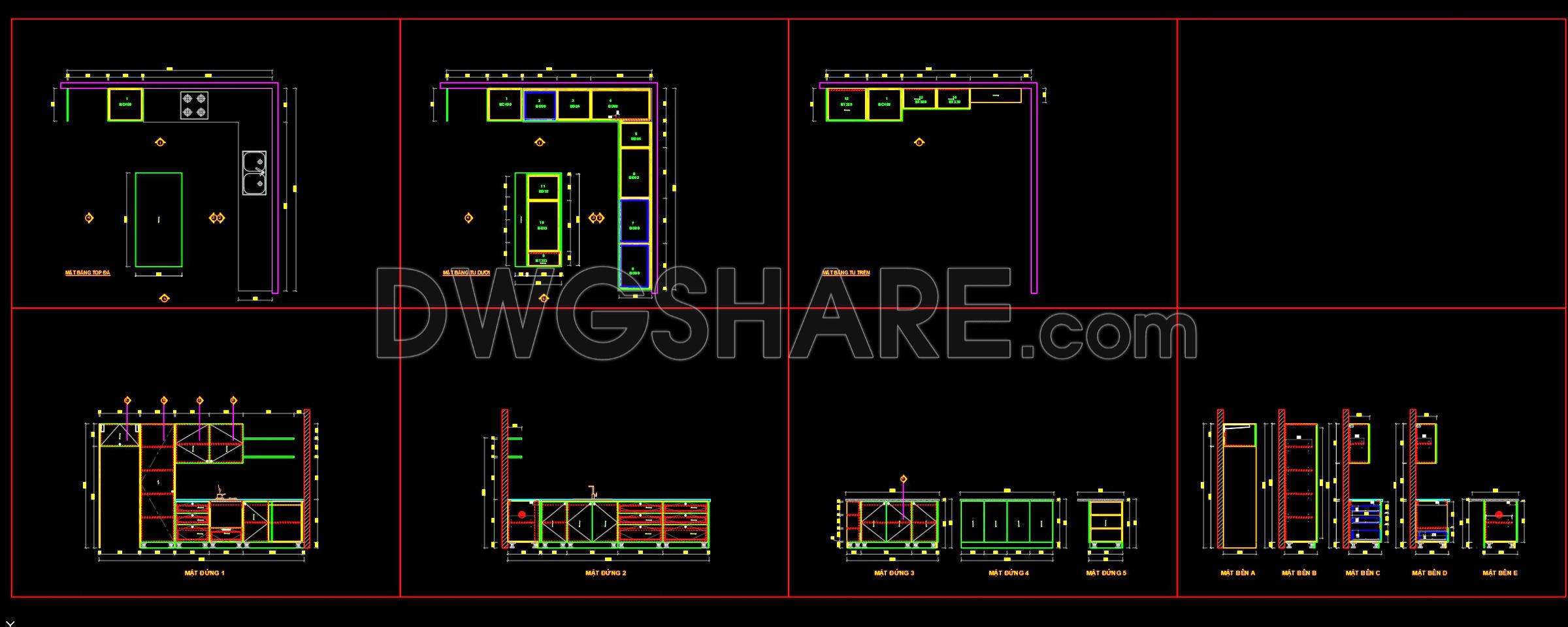 194. Free download CAD technical drawings of kitchen cabinets for the house