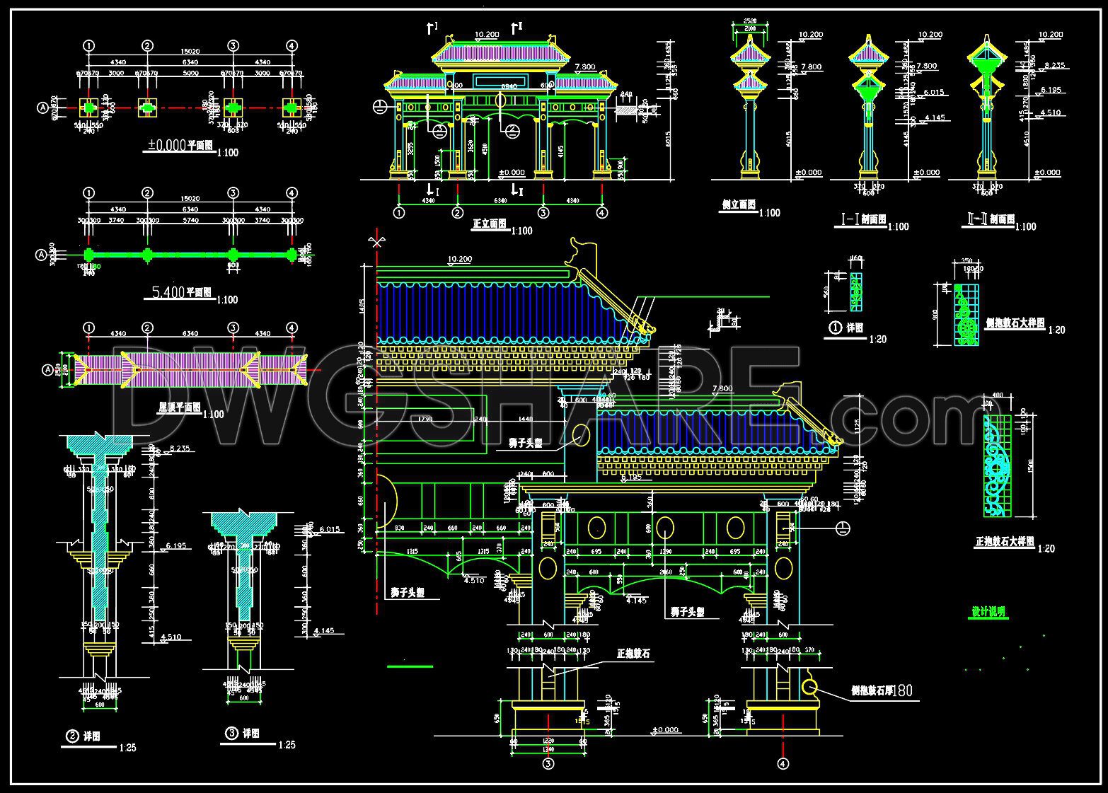 Explore intricate CAD Construction Drawings of Archway Structures with our free downloadable files, showcasing essential components to elevate your architectural projects. These CAD drawings offer multiple views—elevations, sections, and details—highlighting the precision and craftsmanship involved. The archway structures featured serve both aesthetic and structural purposes, often seen in monumental architecture.