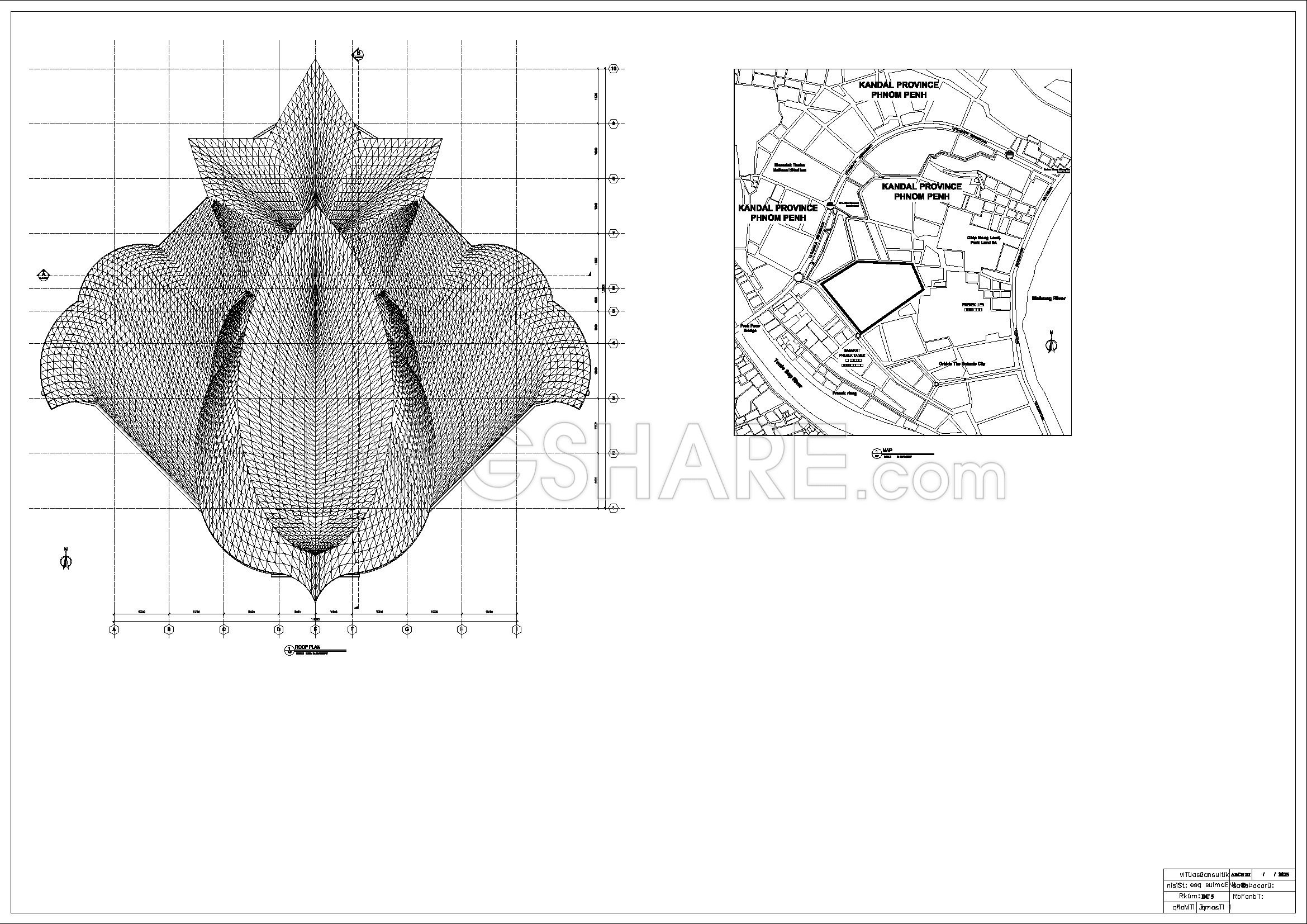 Explore the comprehensive CAD drawings of the grand theater design featuring 1,300 seats. These detailed drawings provide multiple views, including the site plan, floor plan, and structural framework, making them invaluable for architects and builders. The site plan illustrates the strategic location within an urban setting, ensuring optimal accessibility. The floor plans reveal a meticulously designed seating arrangement, enhancing both audience experience and acoustics.