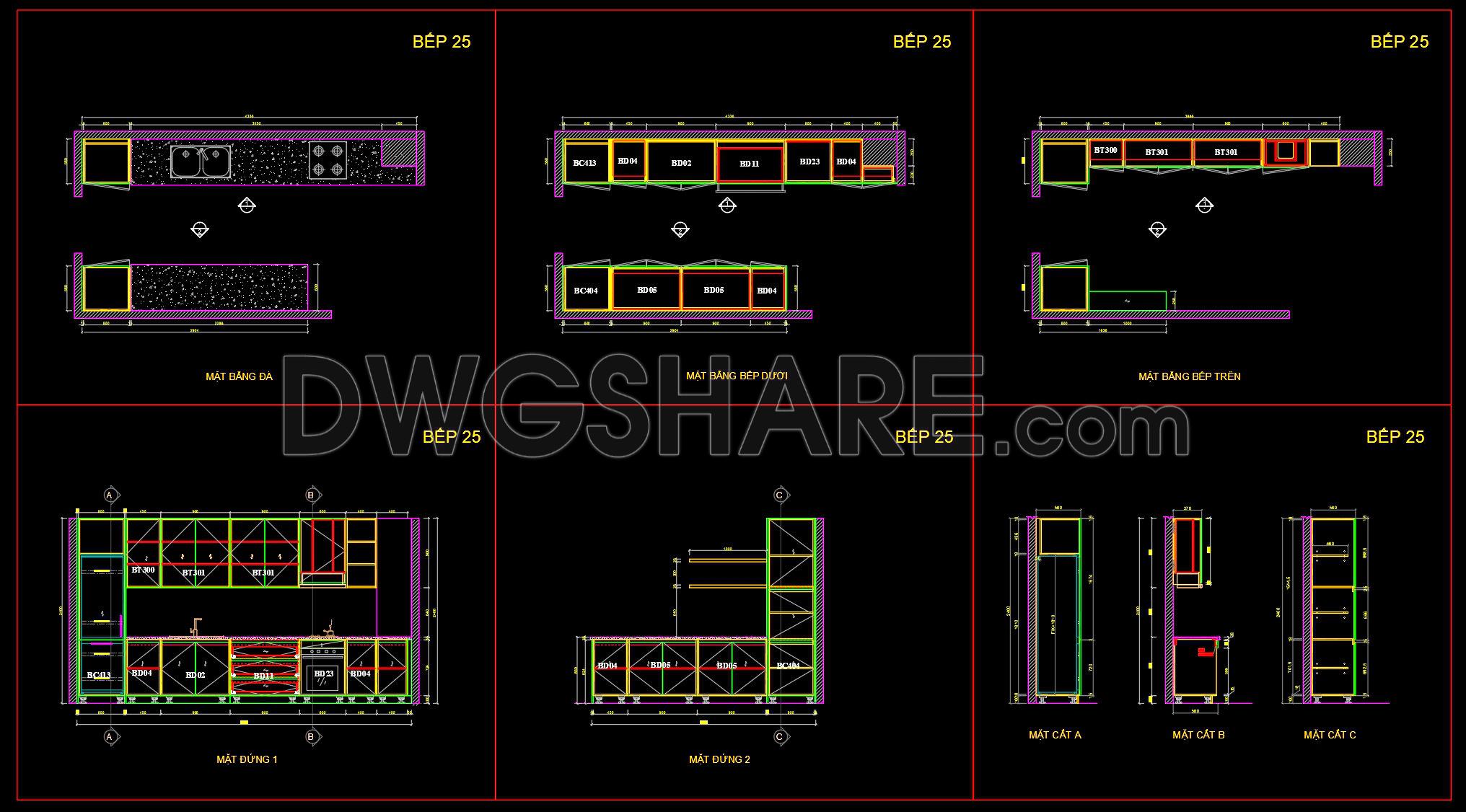 211. Free DWG Files of Modern Kitchen Cabinet Technical Details
