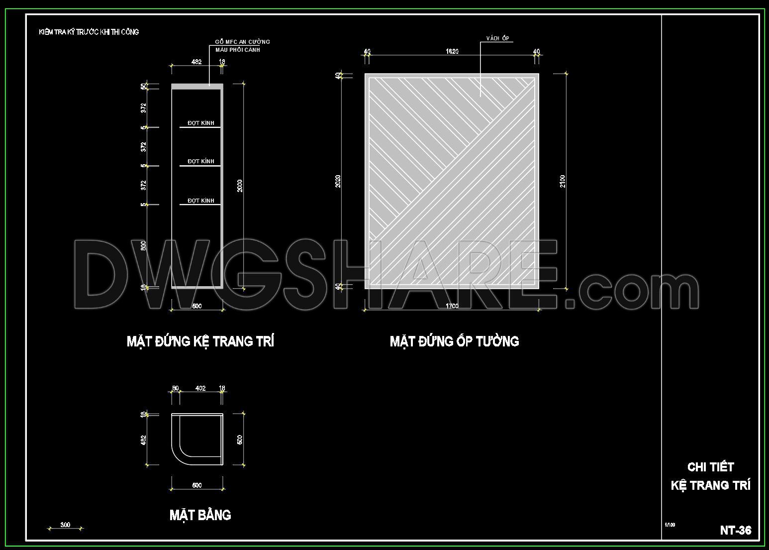215. CAD Drawing of Decorative Shelf and MDF Wall Cladding Detail