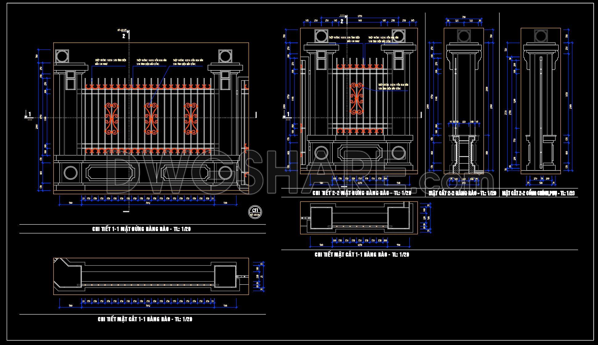 Material specifications, such as steel profiles, concrete bases, and finishing layers, are clearly indicated to support construction and cost estimation. With standard drawing scales and clean CAD layers, this file is suitable for architects, engineers, and contractors. The drawings can be directly used for shop drawings, construction documents, and project approvals in residential or villa projects.