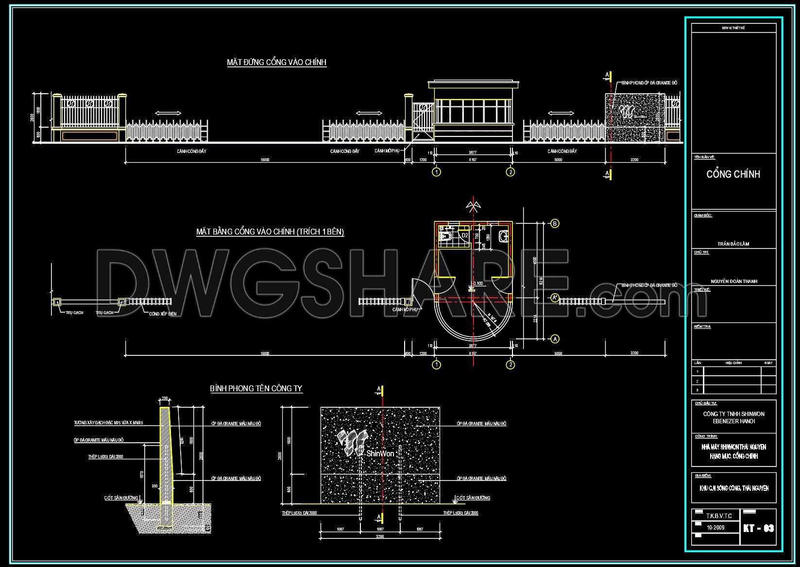234. Free Download Detailed CAD Drawings of Electric Sliding Gate, Fence, and Company Screen Wall