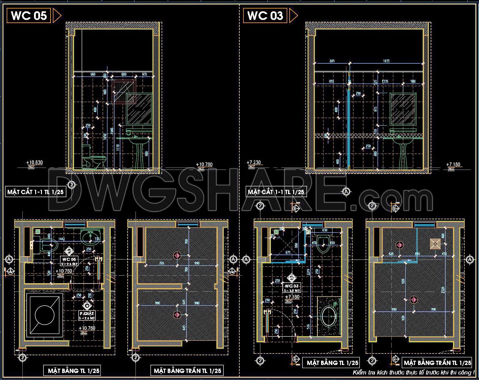 249. Free download of CAD technical drawings for the construction of bathrooms in townhouses