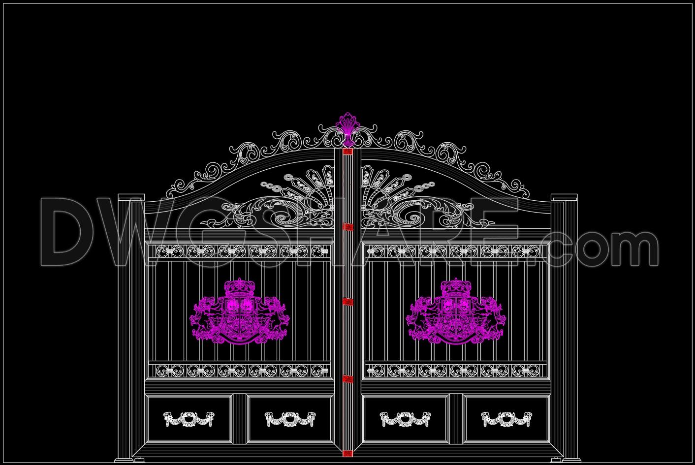 253. Free CAD File of Ornate Classical Villa Gate Design with Detailed Decorative Motifs