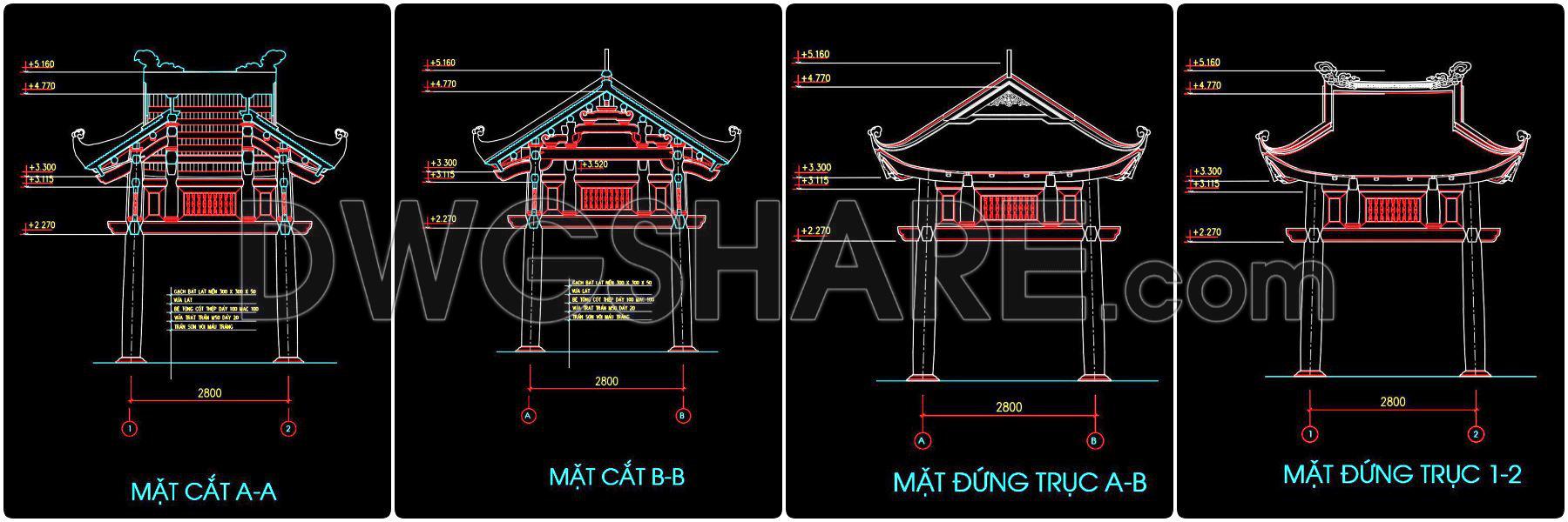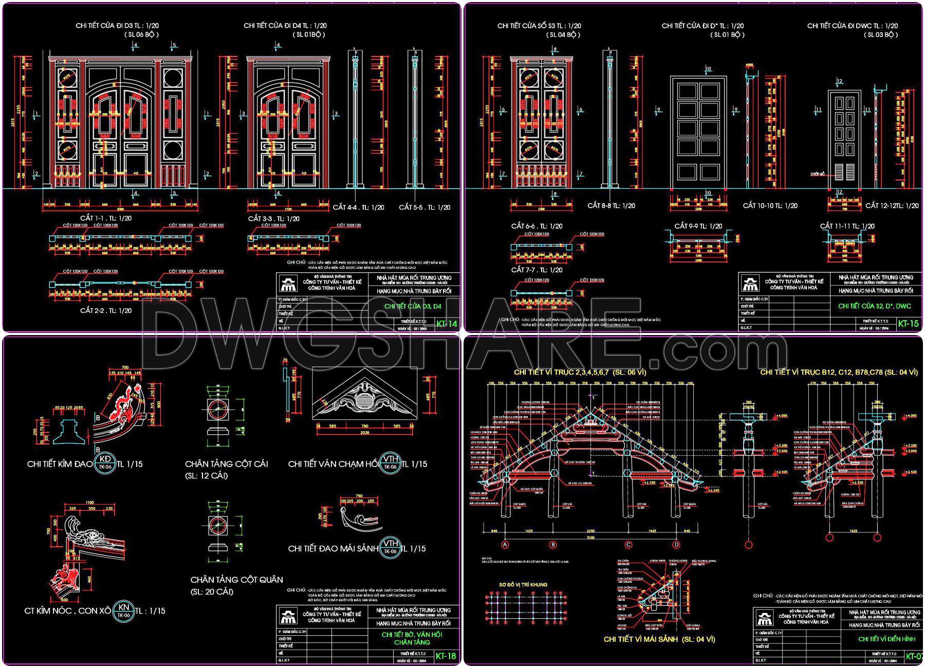 Overall, this is a well-organized drawing set that can serve as a useful reference for those studying traditional cultural architecture, particularly theater buildings designed for Vietnamese water puppet performances.