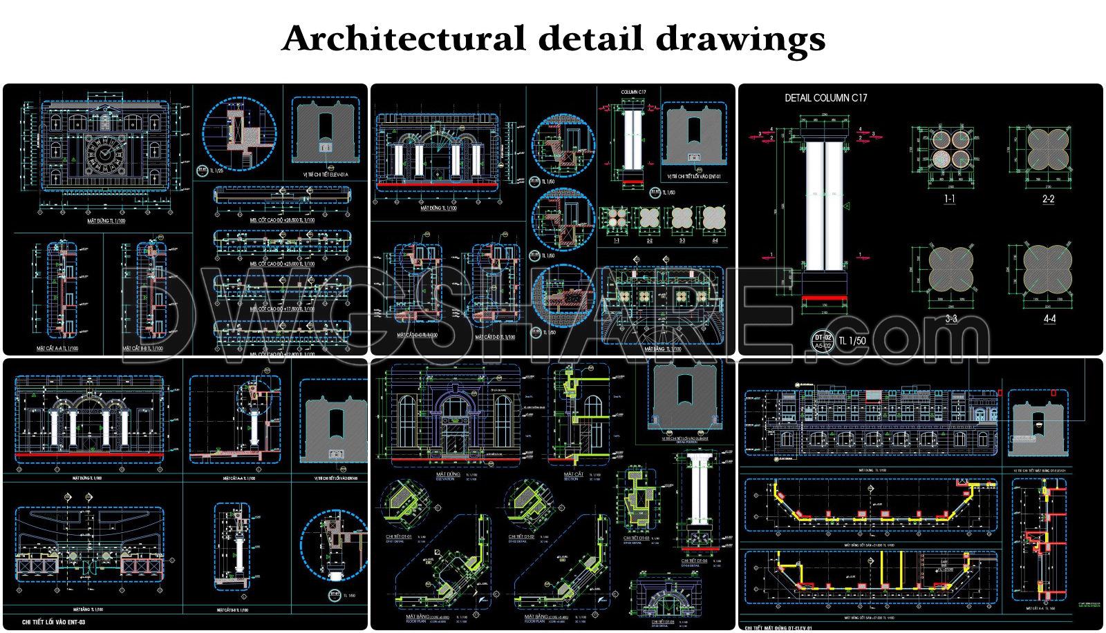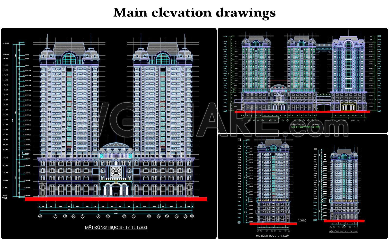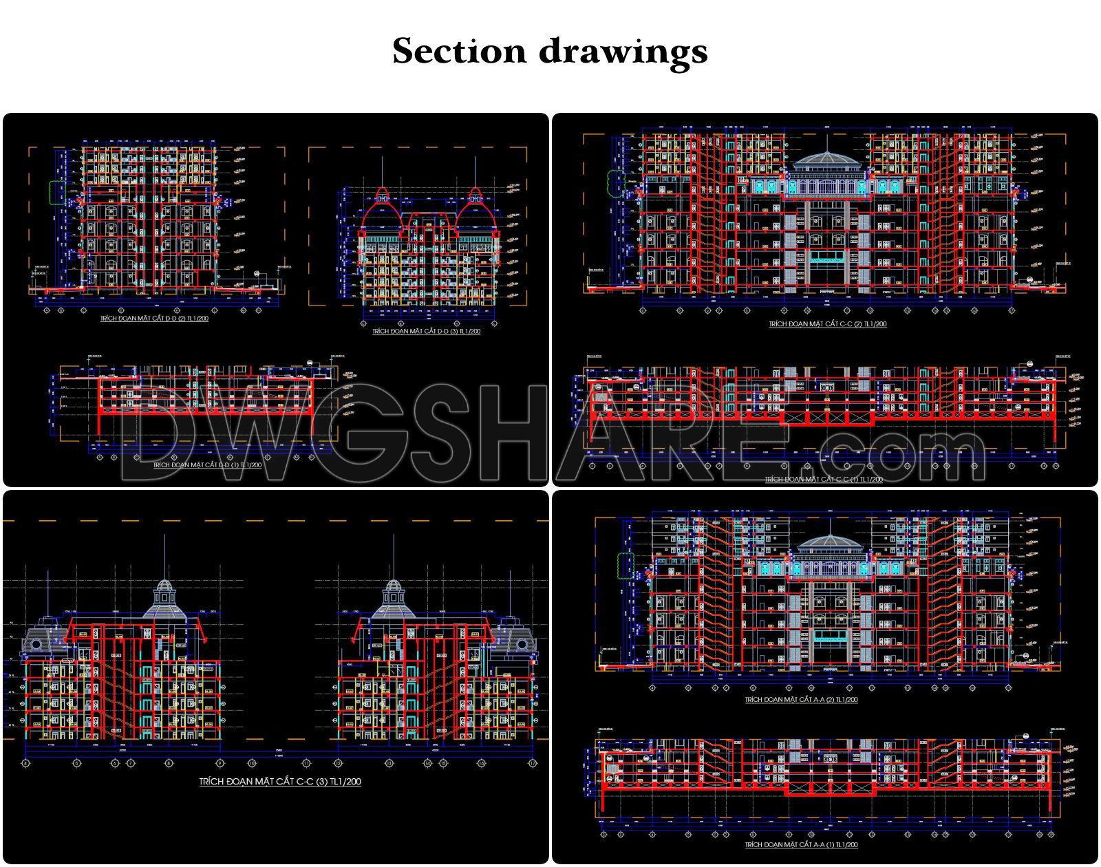 Overall, the drawings combine classical aesthetics with modern technical requirements. The rooftop swimming pool is not only a functional amenity but also a luxury feature that enhances the shopping mall’s architectural identity and customer experience. This set of drawings serves as a crucial reference for design, construction, and facility management.