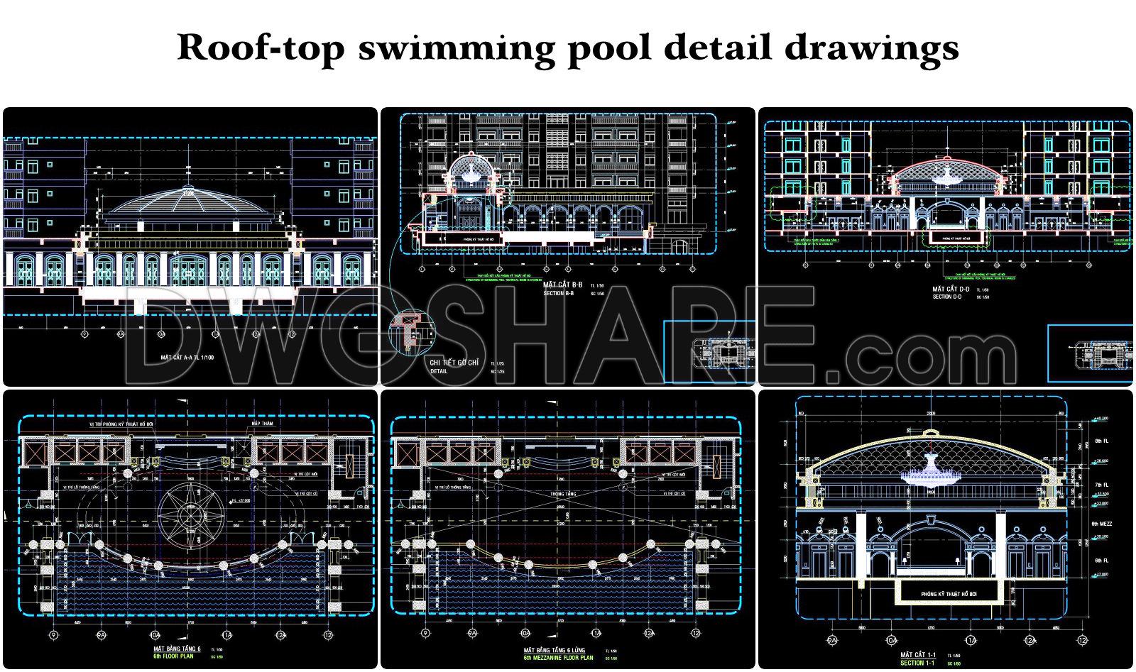 28. Rooftop Swimming Pool Design in Shopping Mall – Detailed CAD Drawings (Free Download)