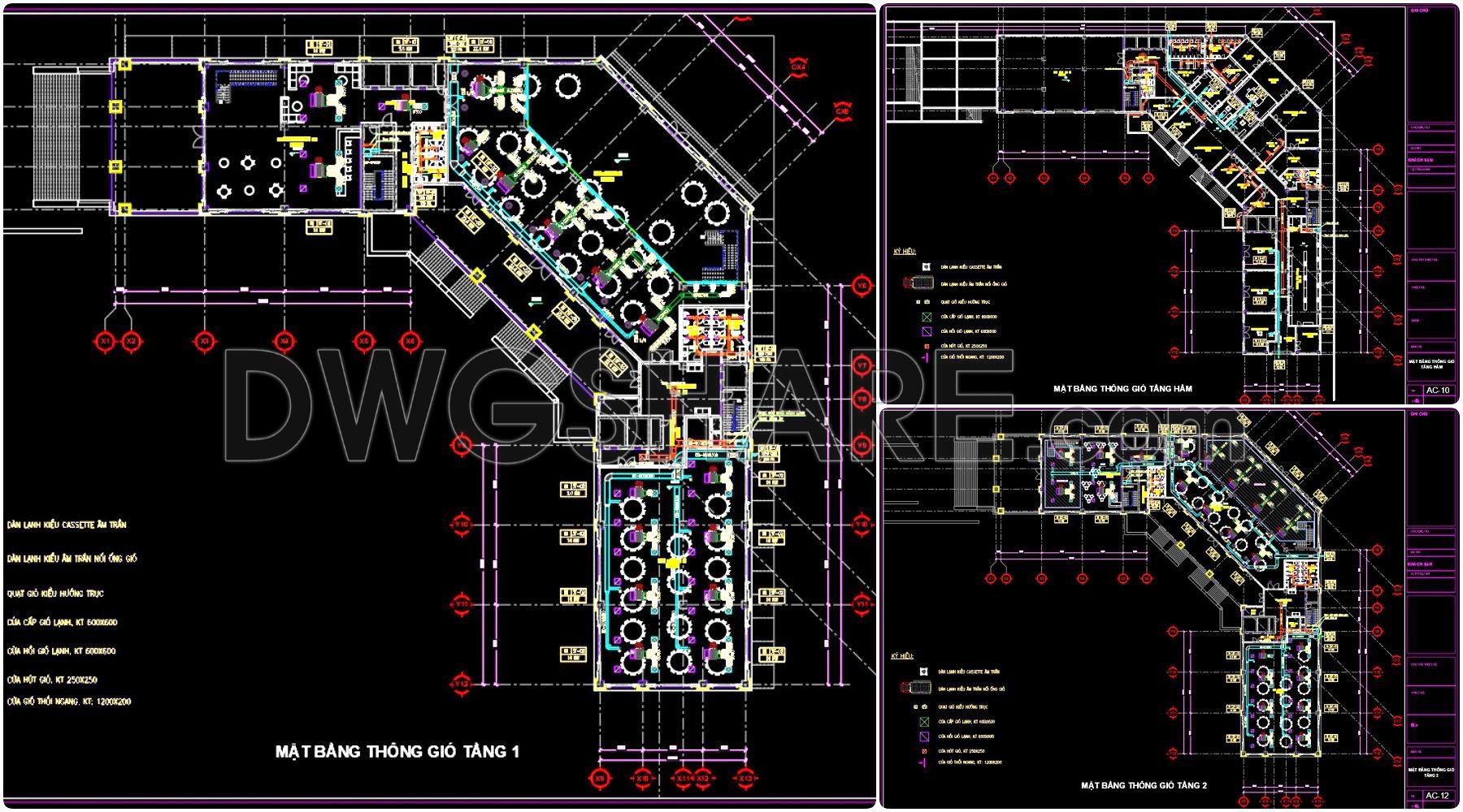 280. Free CAD Ventilation Drawings – Basement & Floors 1-2 of 5-Star Hotel