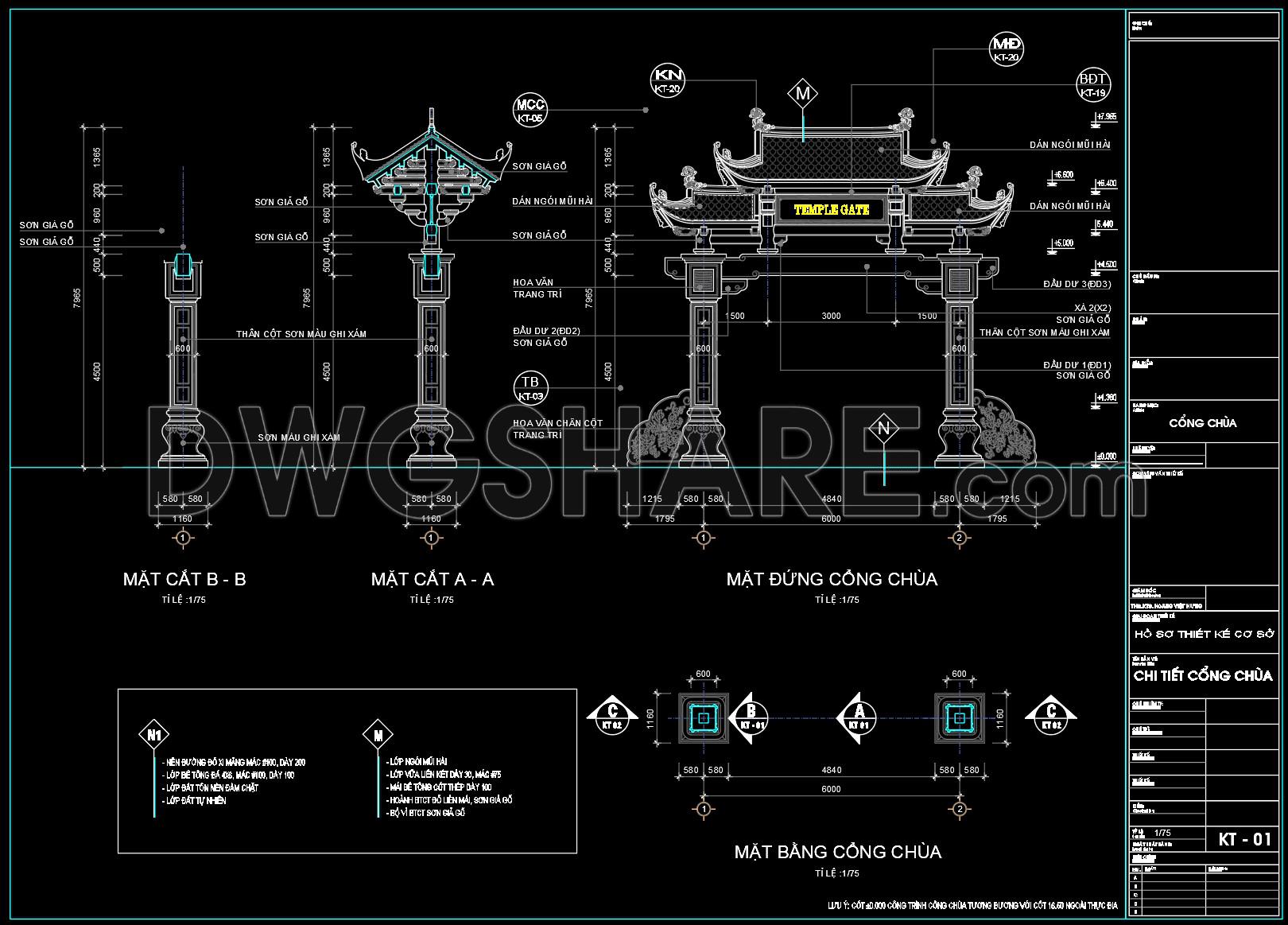 291. Free CAD Drawing of Traditional Temple Gate (Plans, Elevations, Sections)
