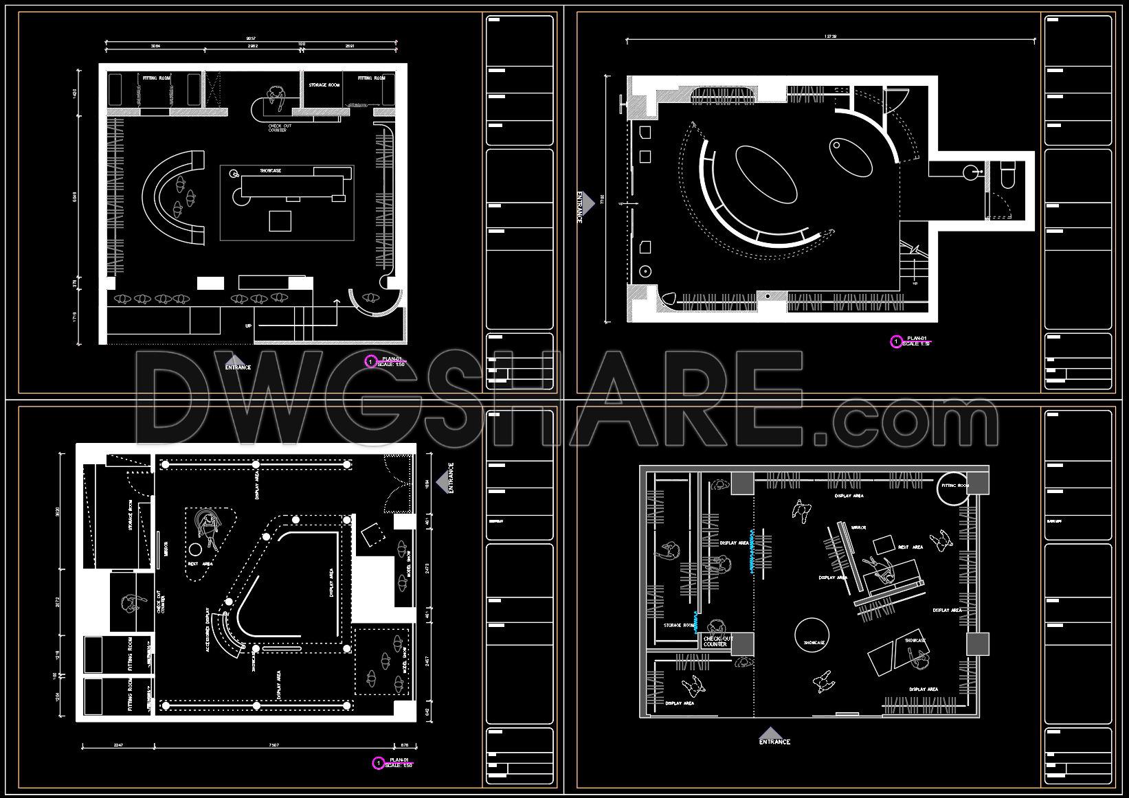 30. Cad drawings of 10 clothing store floor plan designs for download