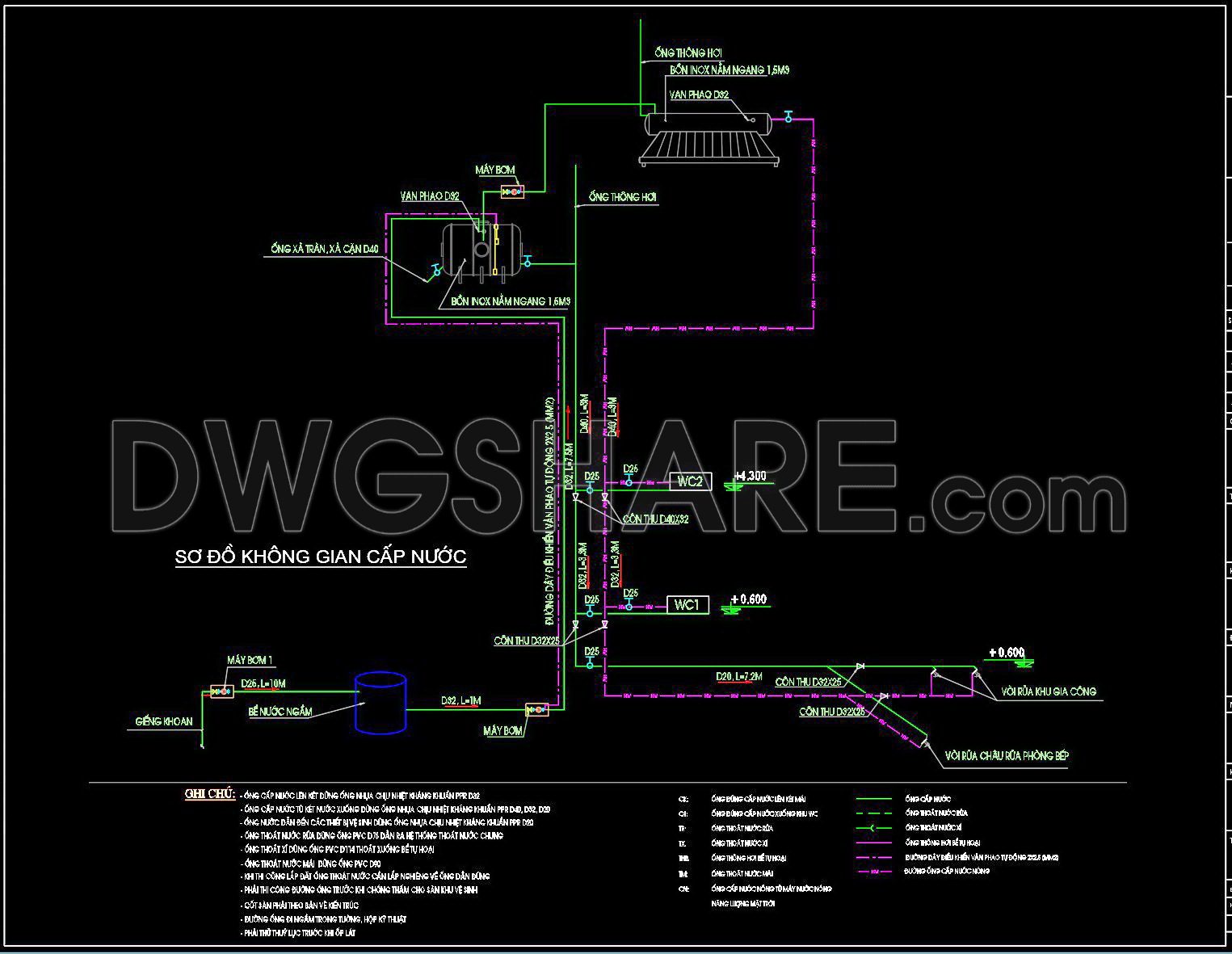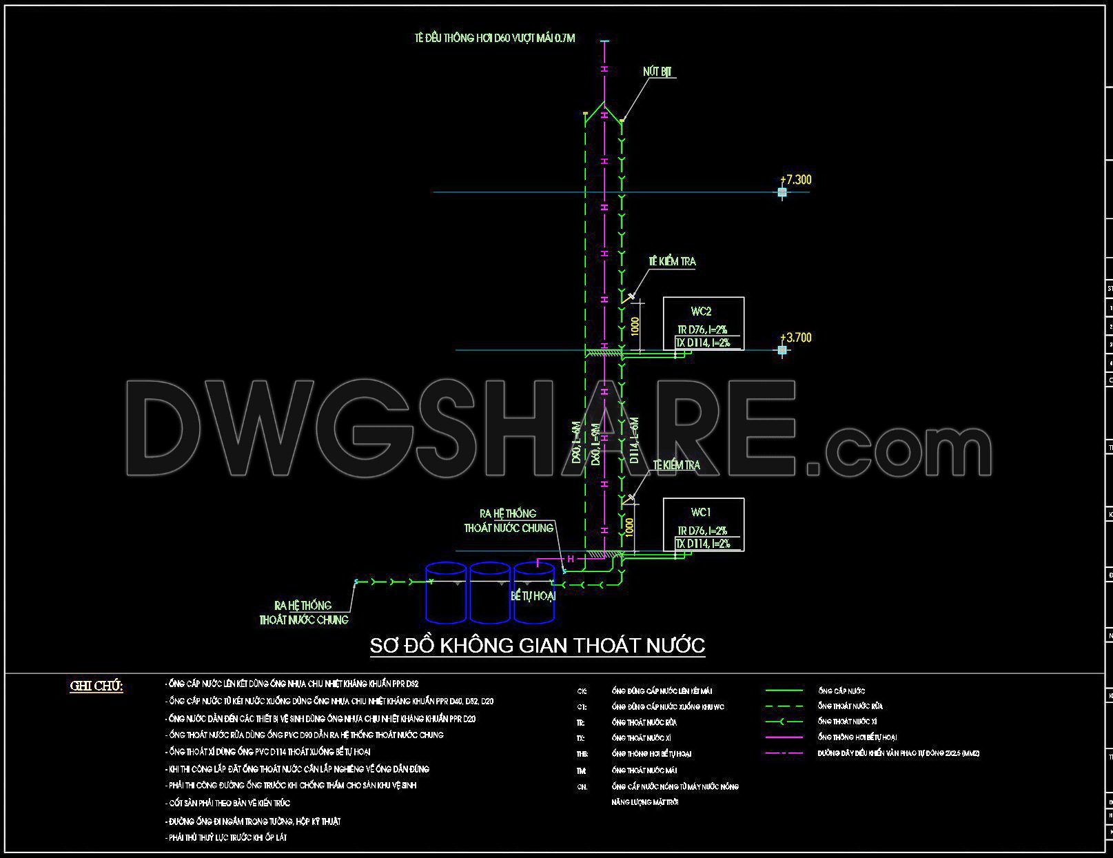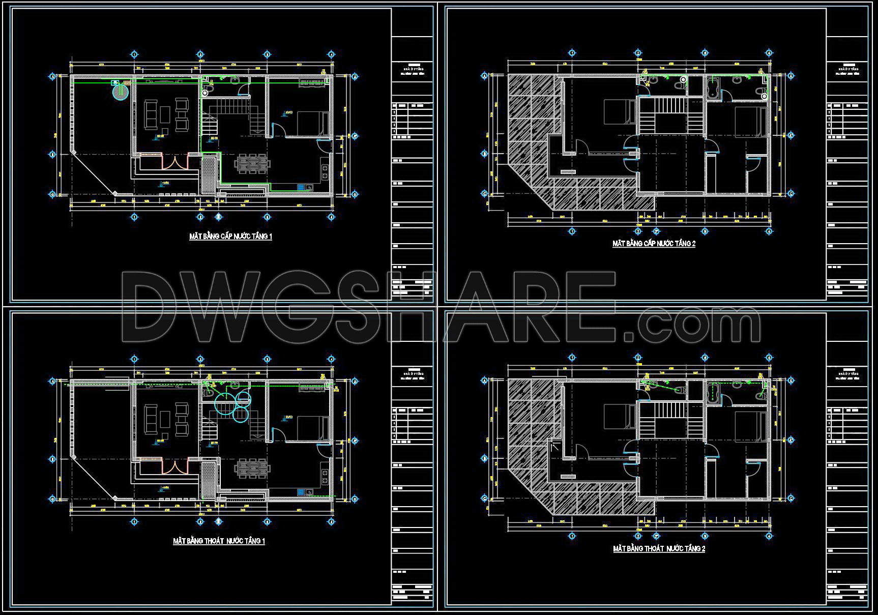 305. CAD drawings detailing the design of water supply and drainage systems for a 2-story townhouse