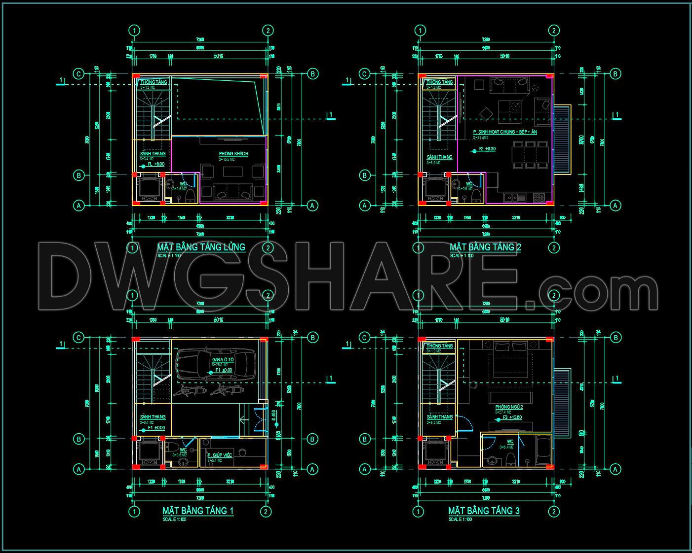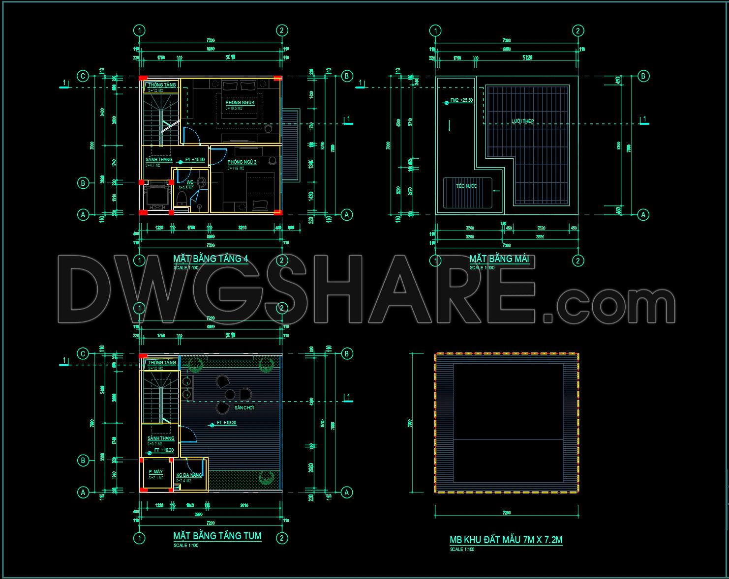 309. Free 7×7.2m Townhouse CAD Drawings – Full Floor Plans & Layouts