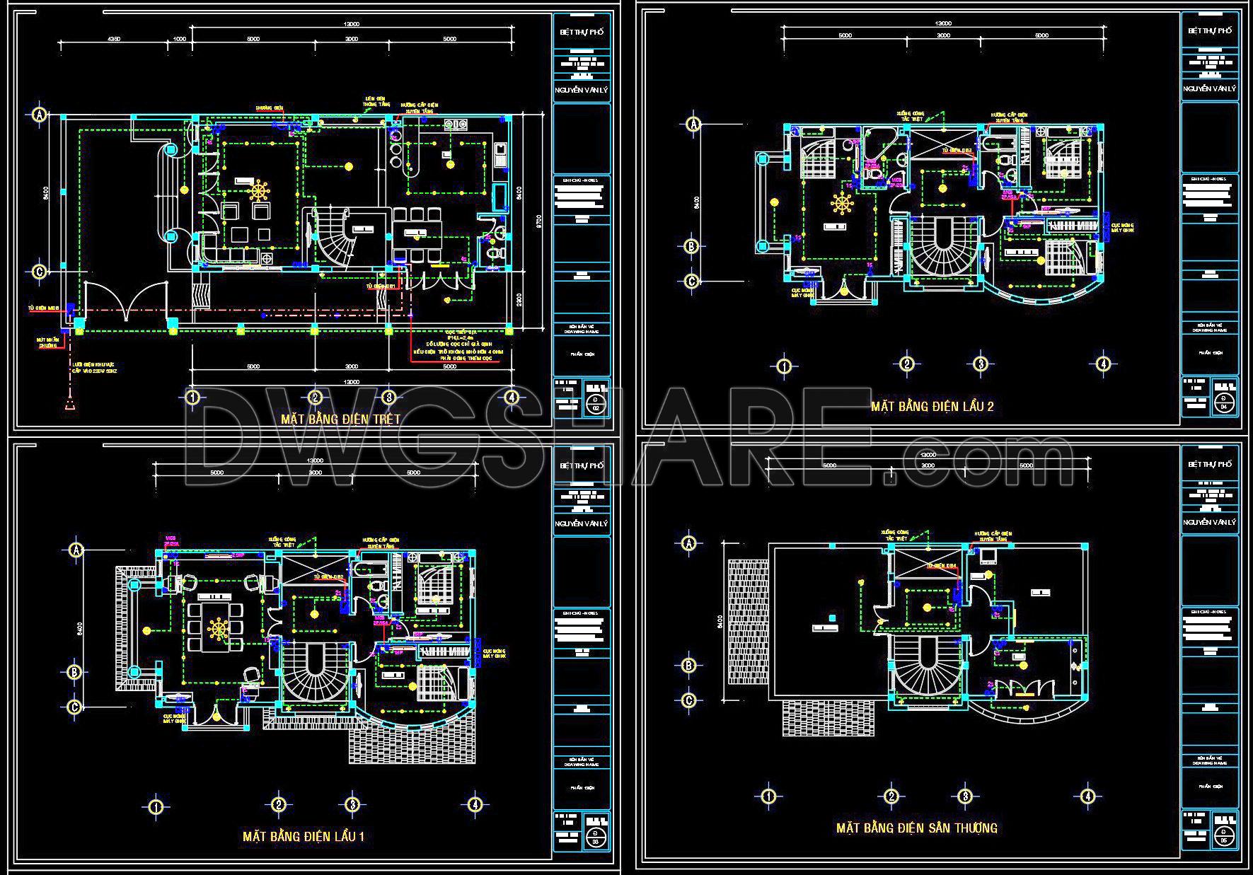312. CAD drawings for detailed electrical designs for a 3-story townhouse
