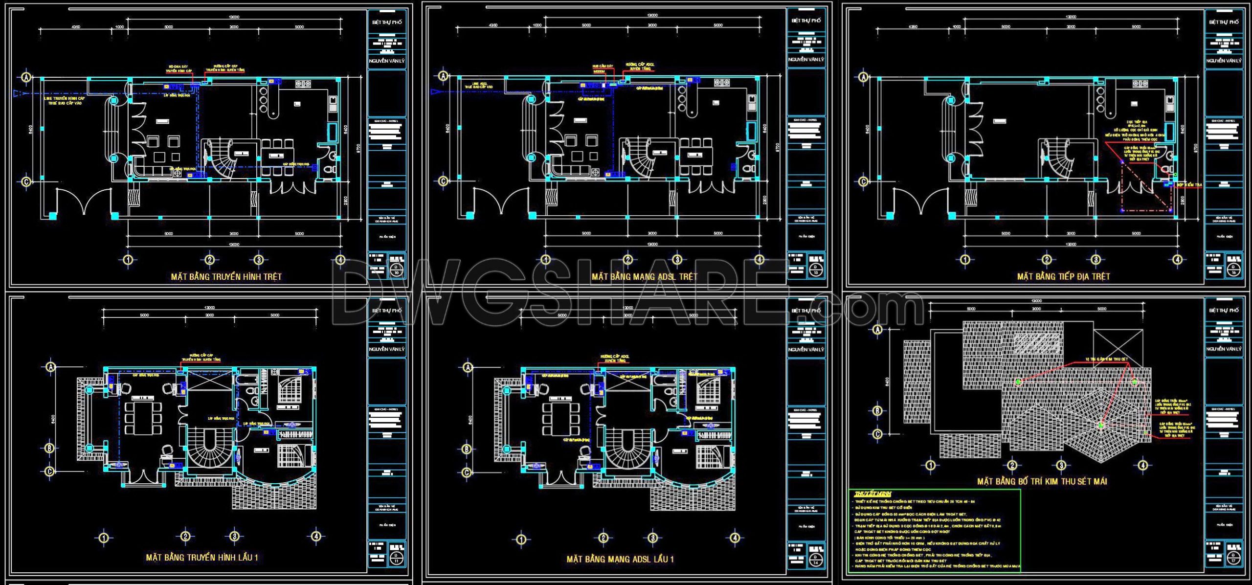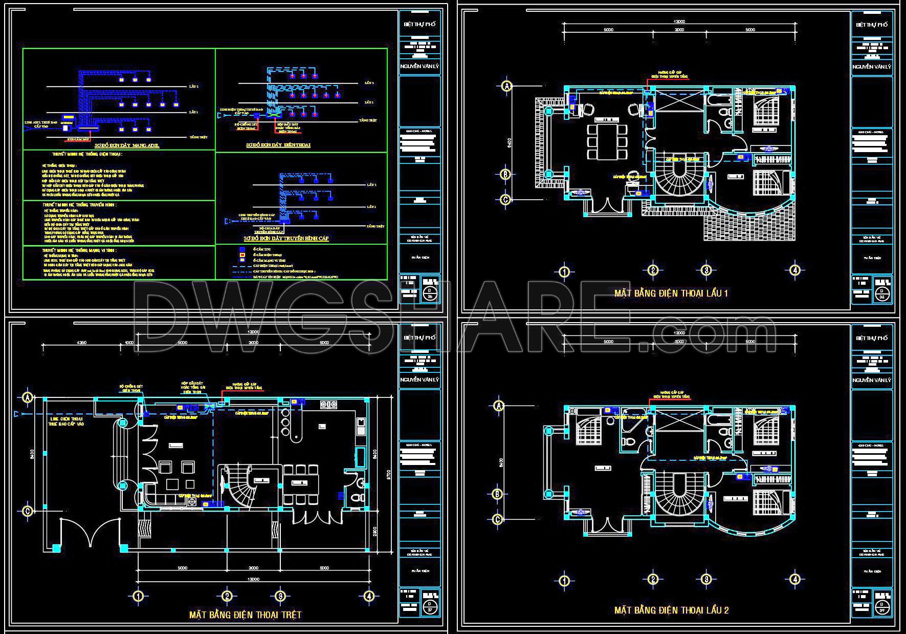 These CAD drawings for detailed electrical designs of a three-story townhouse provide a comprehensive guide for architects and builders. The set includes multiple views to depict different aspects of the project, such as wiring layouts, switch placements, and electrical panels. These drawings offer intricate details, allowing for precise planning and installation.