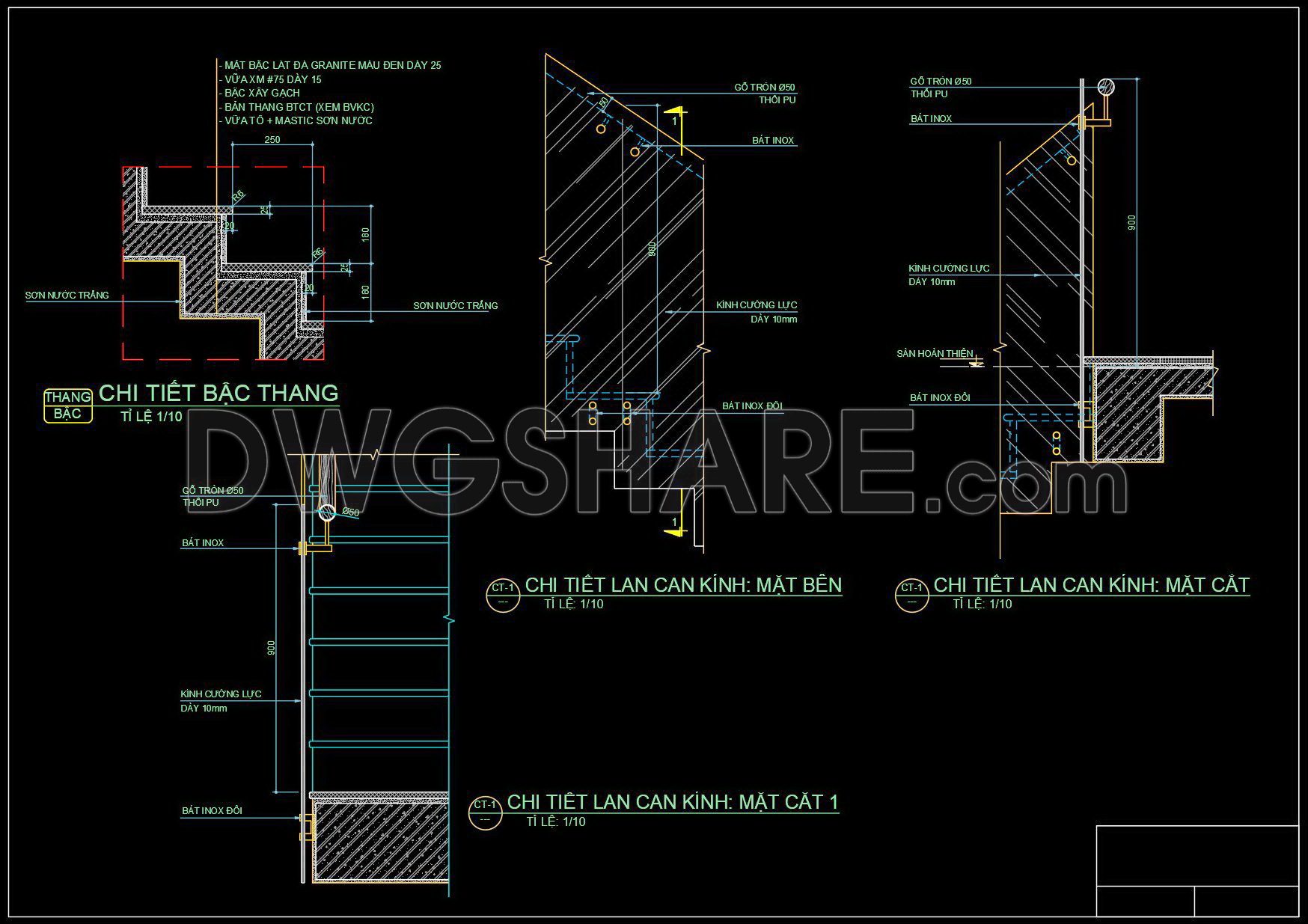 This set of CAD drawings provides a detailed staircase design for townhouse applications. Key components include: